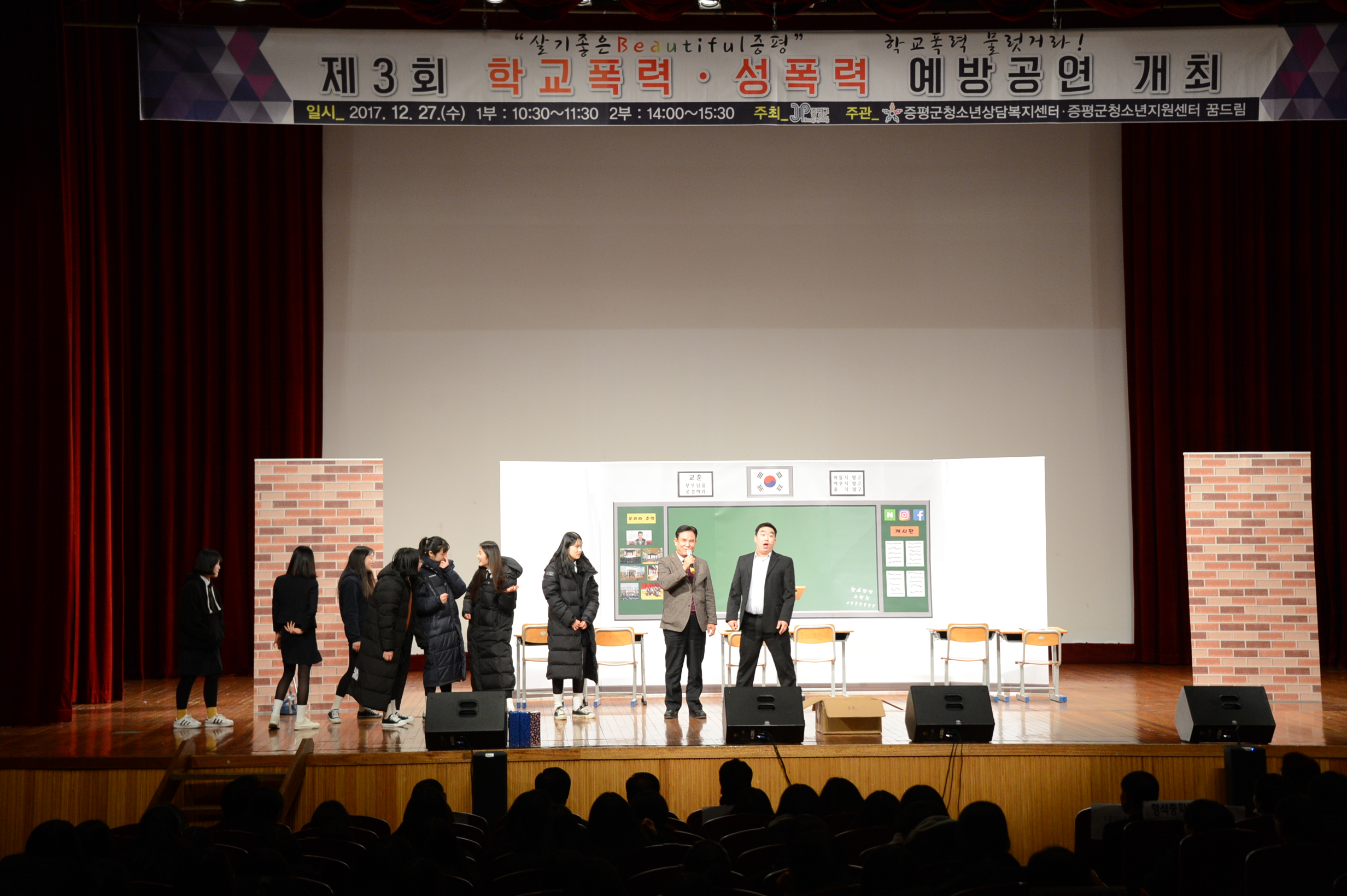 증평군청소년상담복지센터(센터장 김병노)는 27일 증평읍 연탄리 문화회관에서 학교폭력․성폭력 예방 연극공연‘친구사이’를 2회에 나눠 실시했다.(보도자료실 참조)