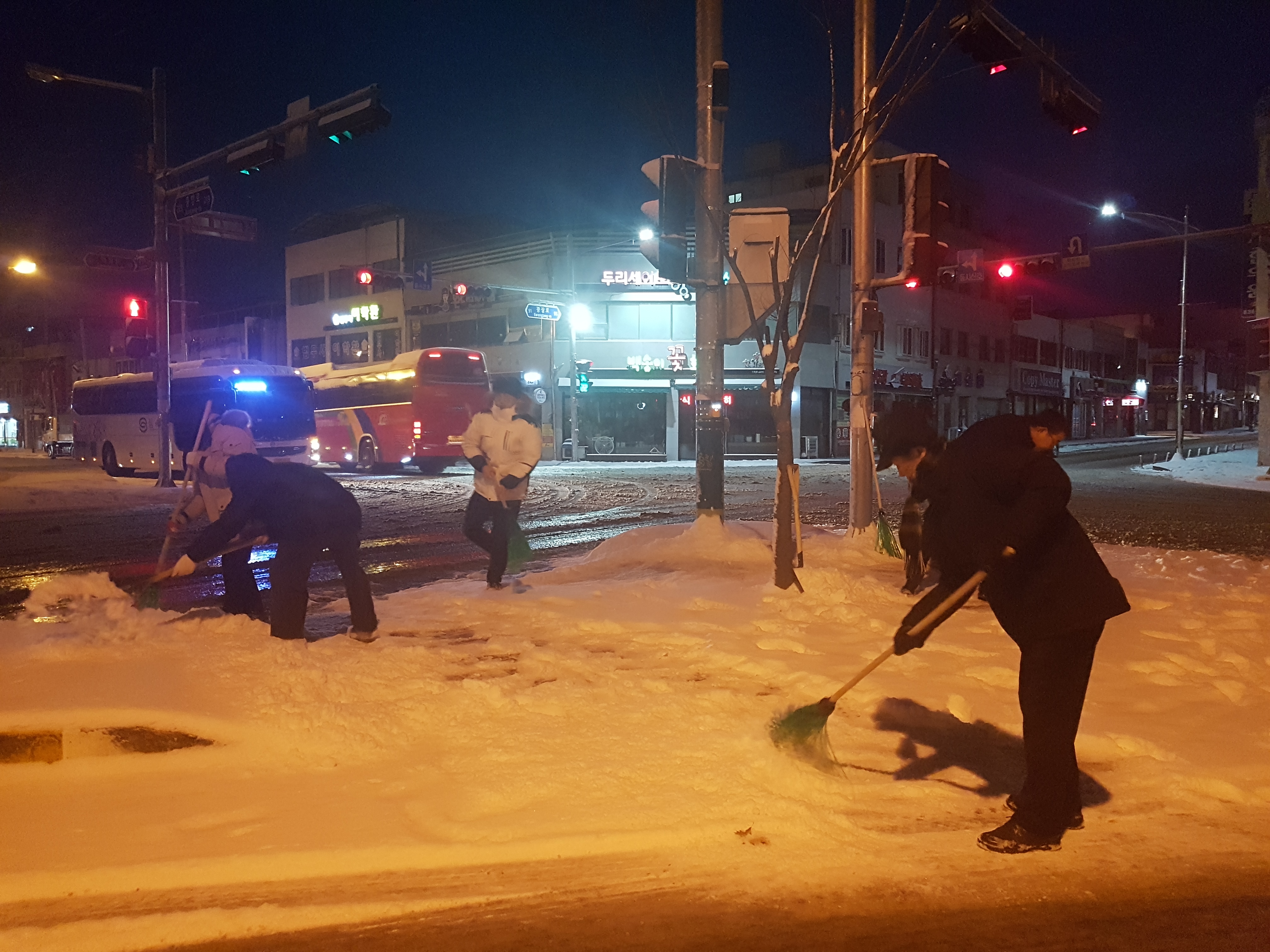 새벽부터 눈 치우는 증평군청 직원들