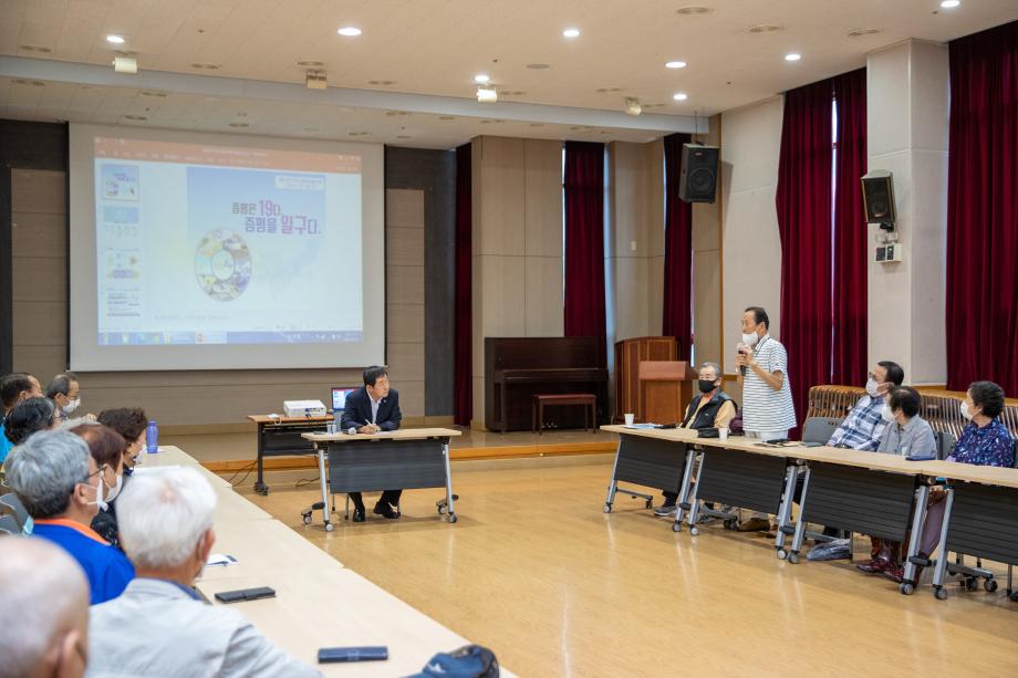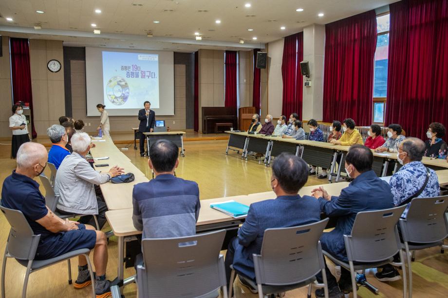 이재영 증평군수가 증평군노인복지관을 찾아 증평군 역사에 대한 특강을 했다.