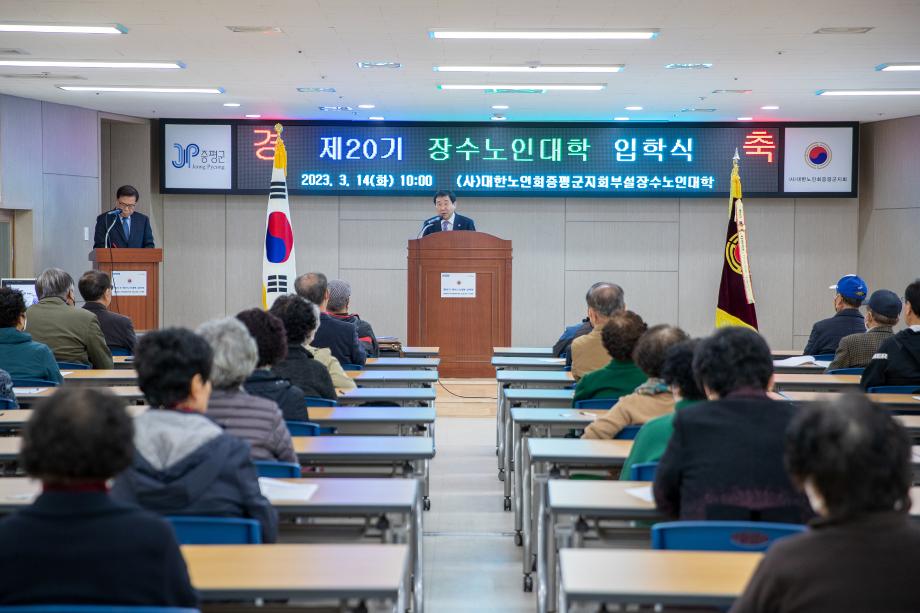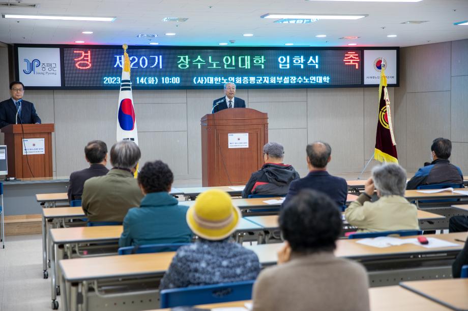 대한노인회 증평군지회(지회장 연훈흠)는 14일 증평군노인지회 회의실에서 제20기 장수노인대학(대학장 이창숙) 입학식을 열었다.
