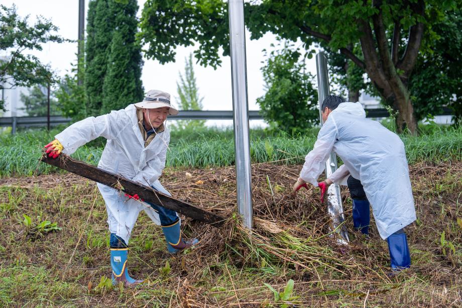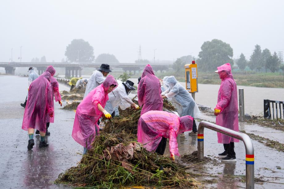 충북 증평군은 19일 이재영 군수를 비롯한 간부공무원들이 휴일을 반납한 채 보강천 일원 수해 쓰레기 수거 작업에 직접 참여하며 복구에 힘을 보탰다고 밝혔다.