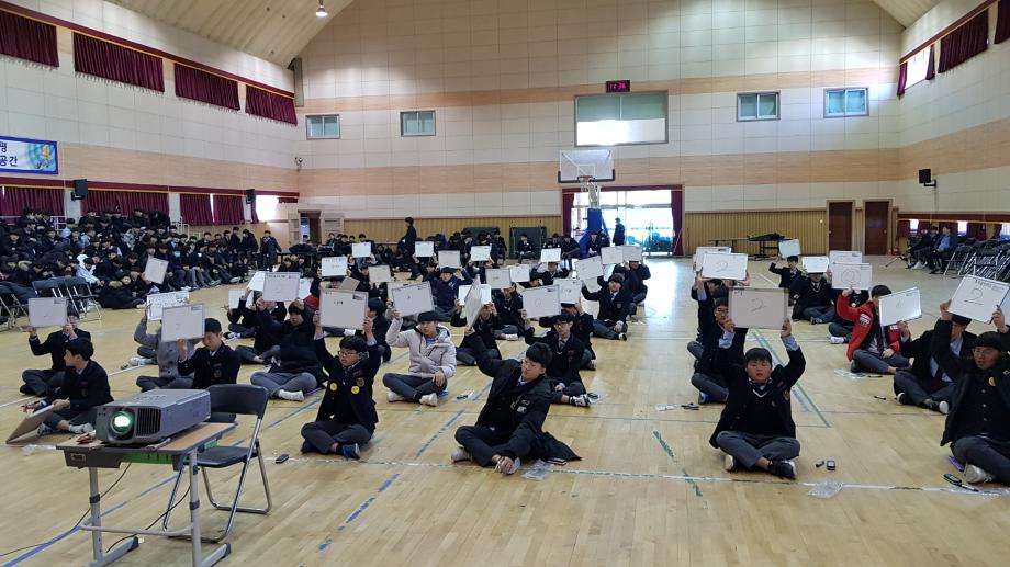 증평군청소년상담복지센터(센터장 김병노)는 23일 증평읍 미암리 형석고등학교 강당에서 형석중학교 재학생 293명을 대상으로 학교폭력예방을 위한 서바이벌 퀴즈‘도전! 골든벨!!’을 실시했다.