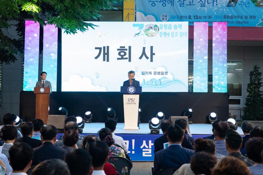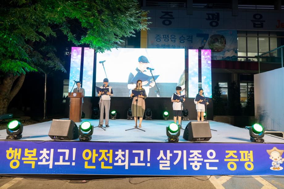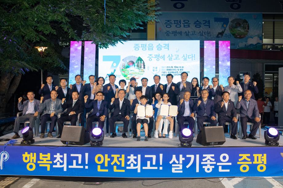증평읍이 8월 13일 오후 6시 30분 읍사무소 앞 광장에 주민과 함께 읍 승격 70주년을 축하하는 자리를 마련했다.