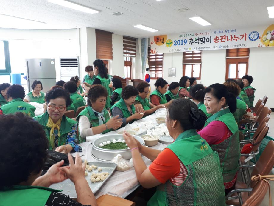 증평군새마을부녀회(회장 최연옥)는 민족 최대의 명절 추석을 앞두고 6일 증평읍 장동리 증평군새마을회관 2층 회의실에서 부녀회의 대표사업인 송편나누기 행사를 열었다.