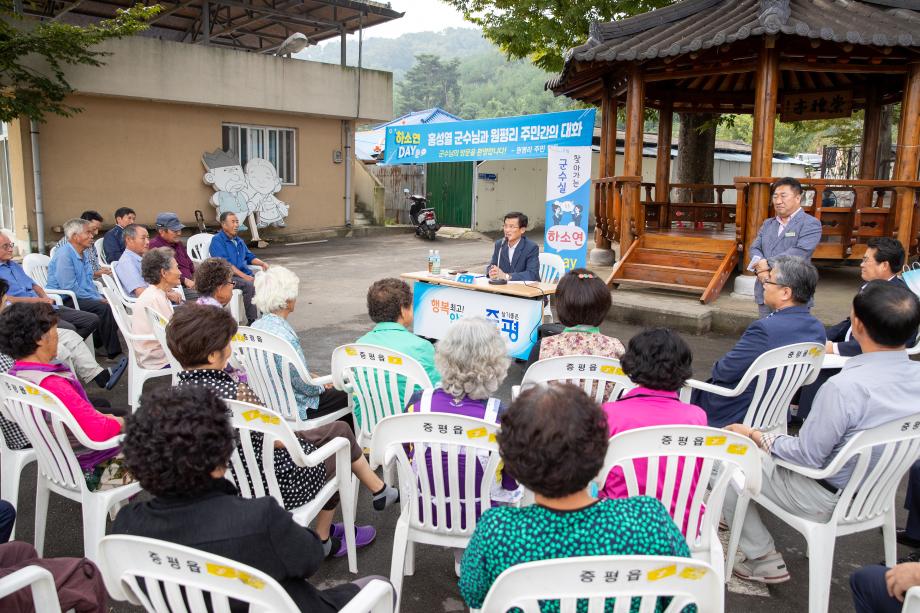홍성열 증평군수는 1일 증평읍 원평리 마을회관에서 ‘찾아가는 군수실 하소연-DAY’를 열고 주민들과 마을 발전 방향 및 애로사항에 대해 허심탄회한 대화를 나눴다.