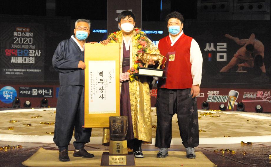 증평군청 인삼씨름단 소속 김진 선수가 지난 26일 경북 영덕군에서 열린 ‘2020 단오장사 씨름대회’에서 통산 4번째 백두장사에 올랐다.