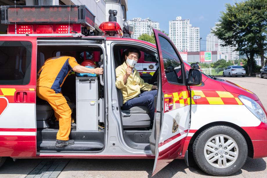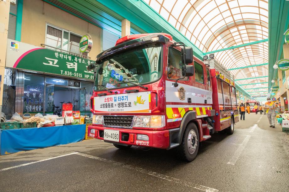 20일 증평 장뜰시장 등 관내 주요 도로를 대상으로 소방차 길 터주기 군민 동승체험 훈련을 실시했다.