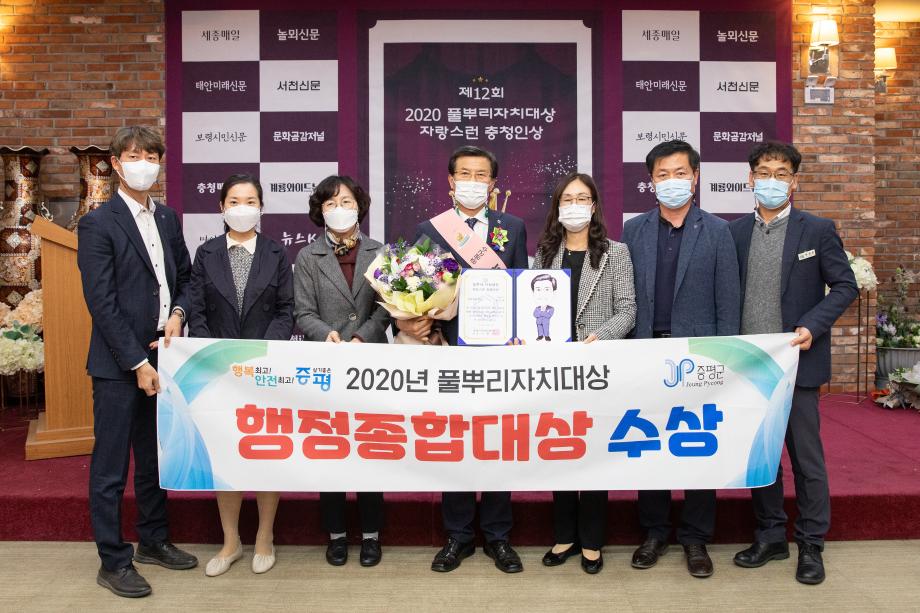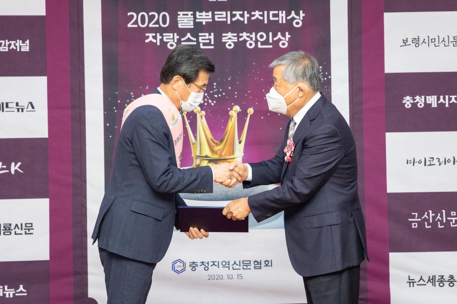 홍성열 증평군수는 15일 논산시 노블레스 컨벤션센터에서 열린 2020 풀뿌리 자치대상 시상식에서 ‘자랑스런 충청인상 행정종합대상’을 수상했다.