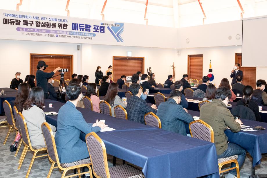 증평군 지역혁신협의회(위원장 김승용)는 19일 블랙스톤 벨포레리조트에서 군 관계자 및 벨포레리조트 관계자 등 60여명이 참석한 가운데 에듀팜 포럼을 개최했다.