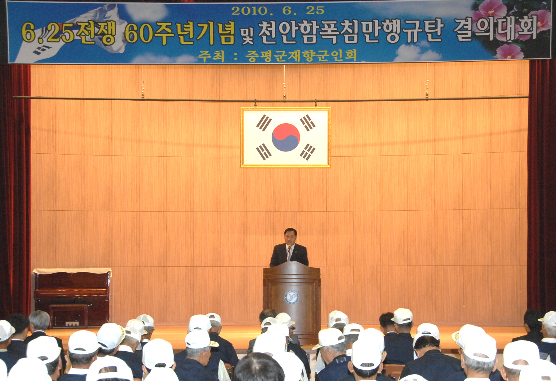제60주년 6.25전쟁 기념행사가 25일 오전 11시 청소년수련관에서 유명호 군수, 홍석원 재향군인회장을 비롯한 각급 기관단체장과 참전용사, 향군회원 및 가족 등 300여명이 참석한 가운데 열렸다.[보도자료실 참조]