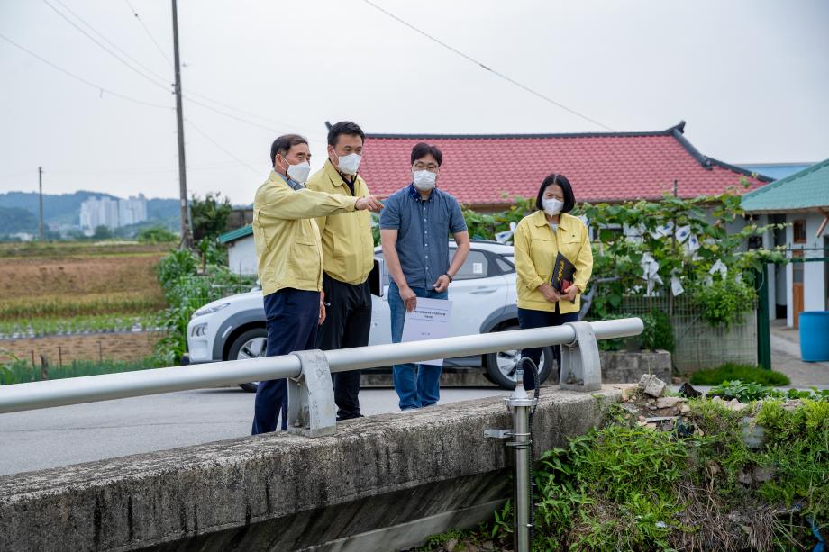 전광식 증평부군수는 9일 점검반과 함께 여름철 우기에 대비하여 증평읍 사곡리 일원 질벌뜰 조기경보체계구축 현장점검을 실시했다.