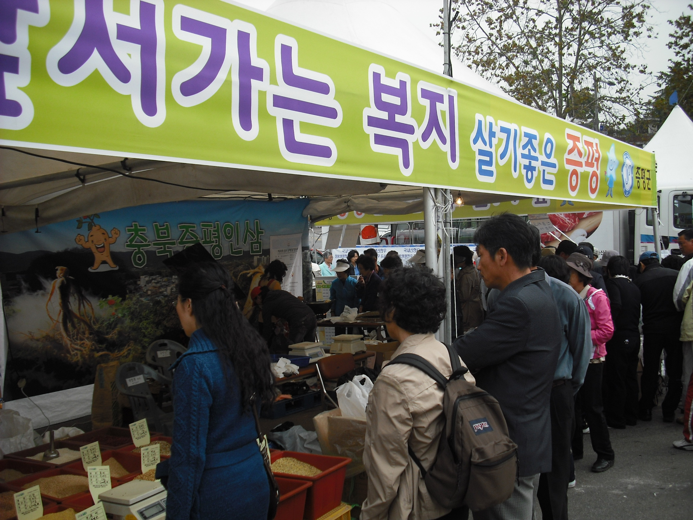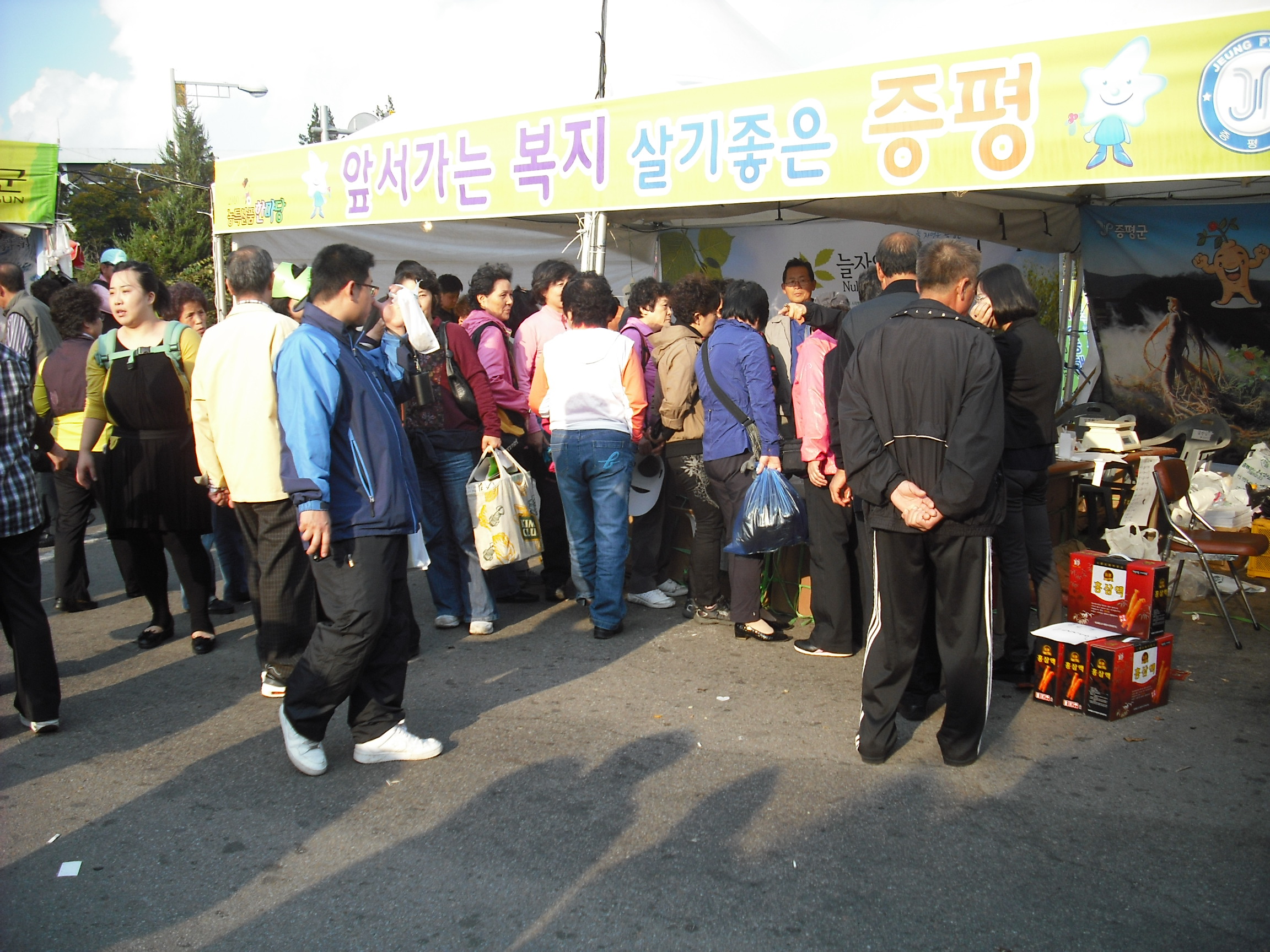 증평군 농·특산품 직거래 판매량이 10월 이후 가파른 상승세를 이어가고 있다.[보도자료실 참조: 사진은 농·특산품 직거래 판매 모습]