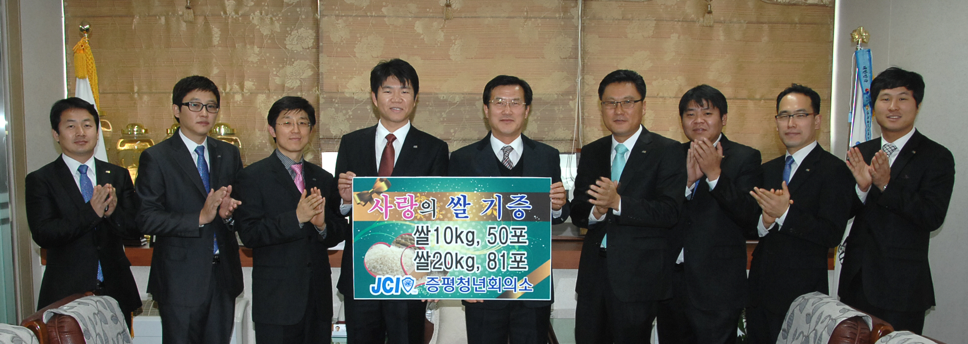 증평JCI(회장 권신원)는 21일 오후3시 증평군청을 방문하여 불우 이웃돕기 ‘사랑의 쌀’ 2120kg(약 437만원 상당)을 기탁 했다.[보도자료실 참조]