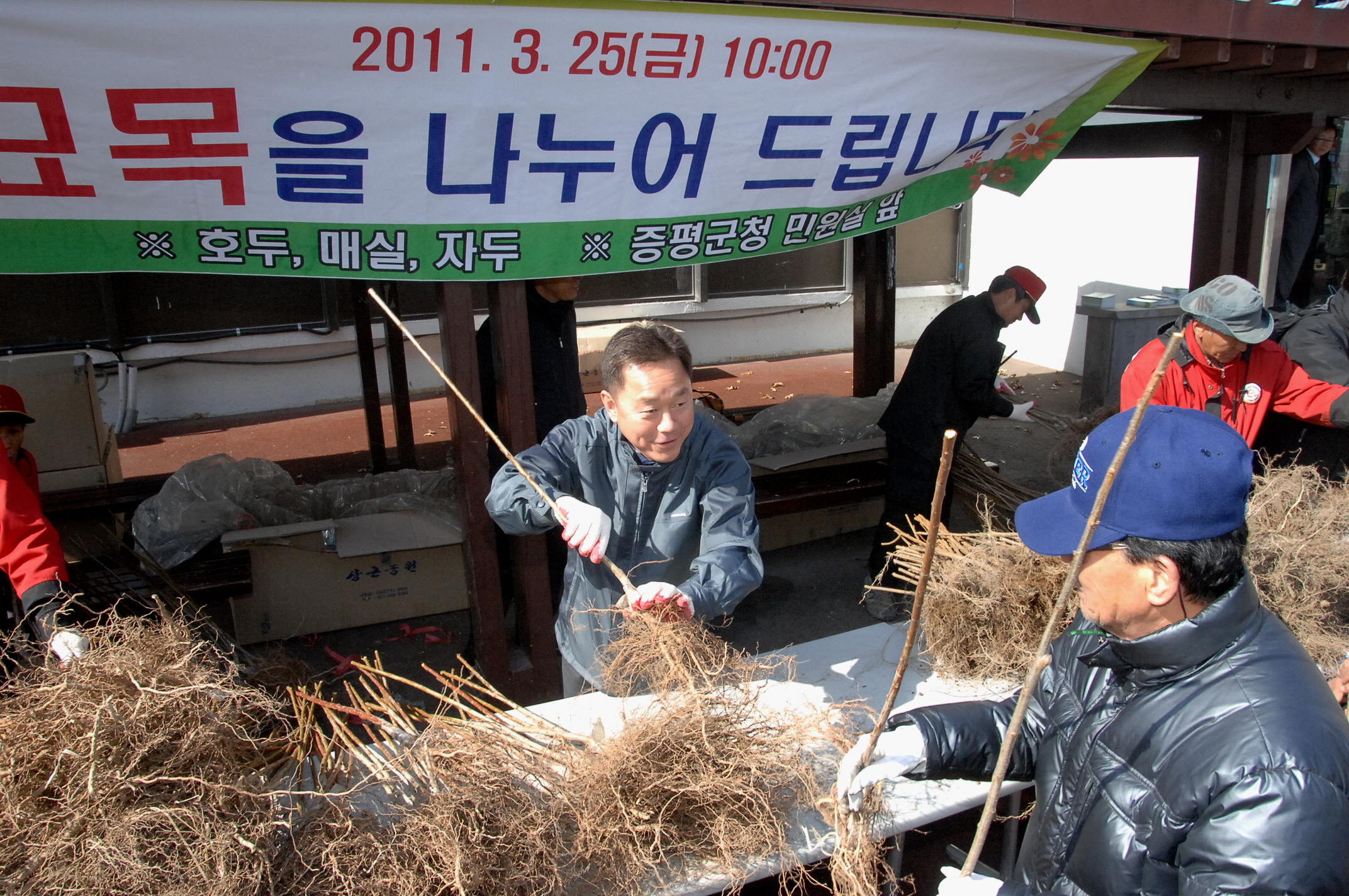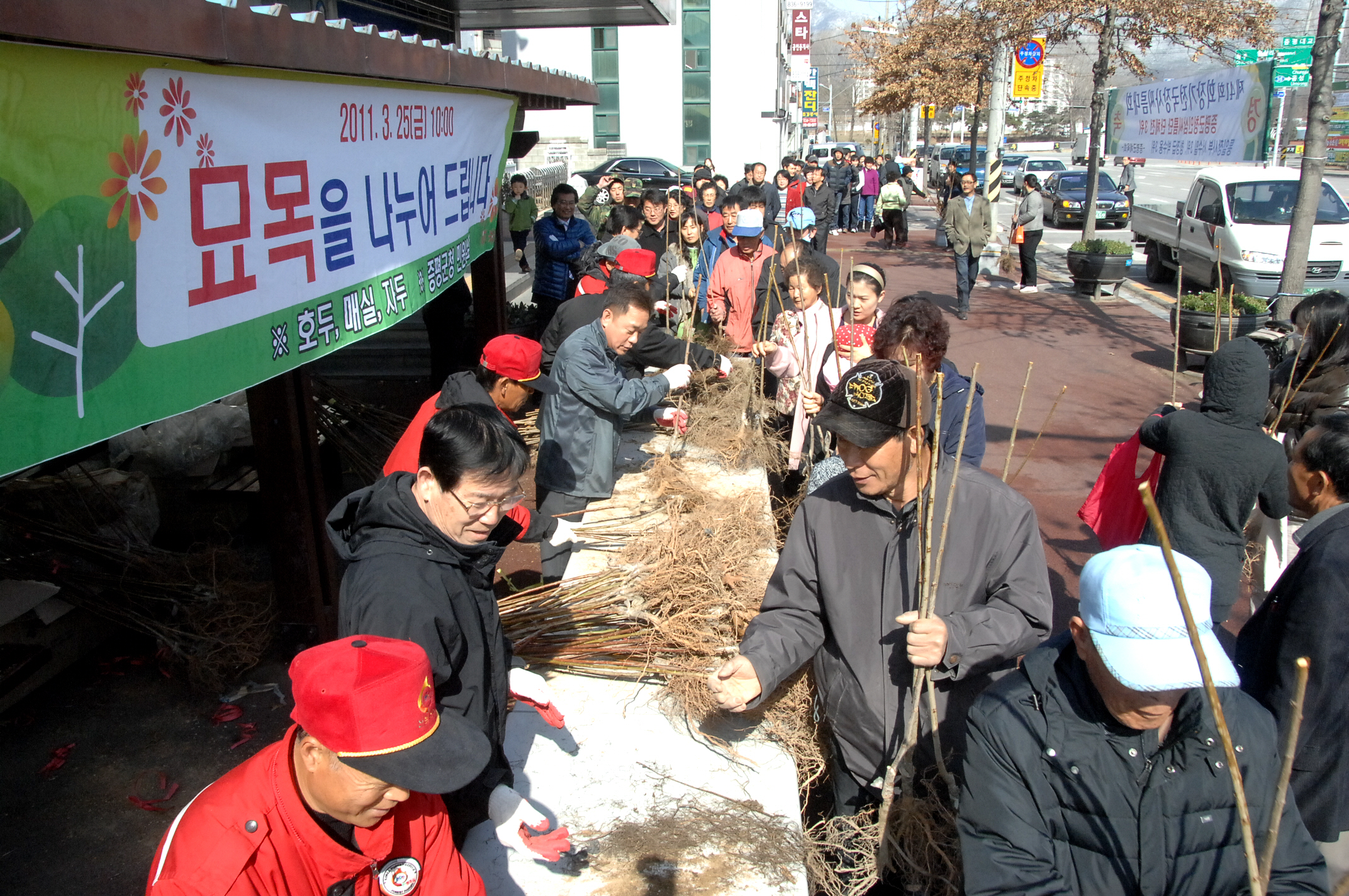 증평군은 세계 산림의 해를 기념하고 녹색성장을 선도해 나가자는 취지에서 25일 오전 10시 군청 민원실 앞에서 나무 나누기 행사를 전개했다. [보도자료실 참조]