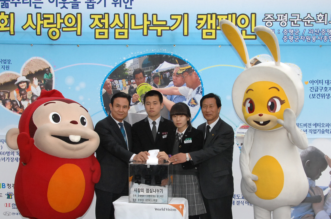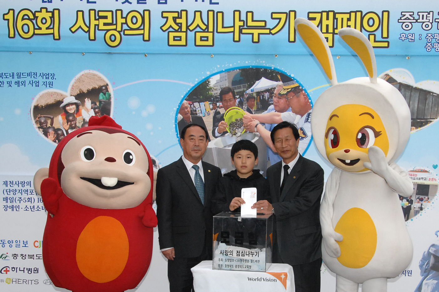 동양일보와 CJB청주방송, 월드비젼 충북지부가 공동 주최한 모금 행사는 우리 주변의 결식아동과 북한 어린이 돕기, 해외보건교육지원사업, 6.25 참전국인 에티오피아 참전용사 마을을 돕는데 쓰여진다.
