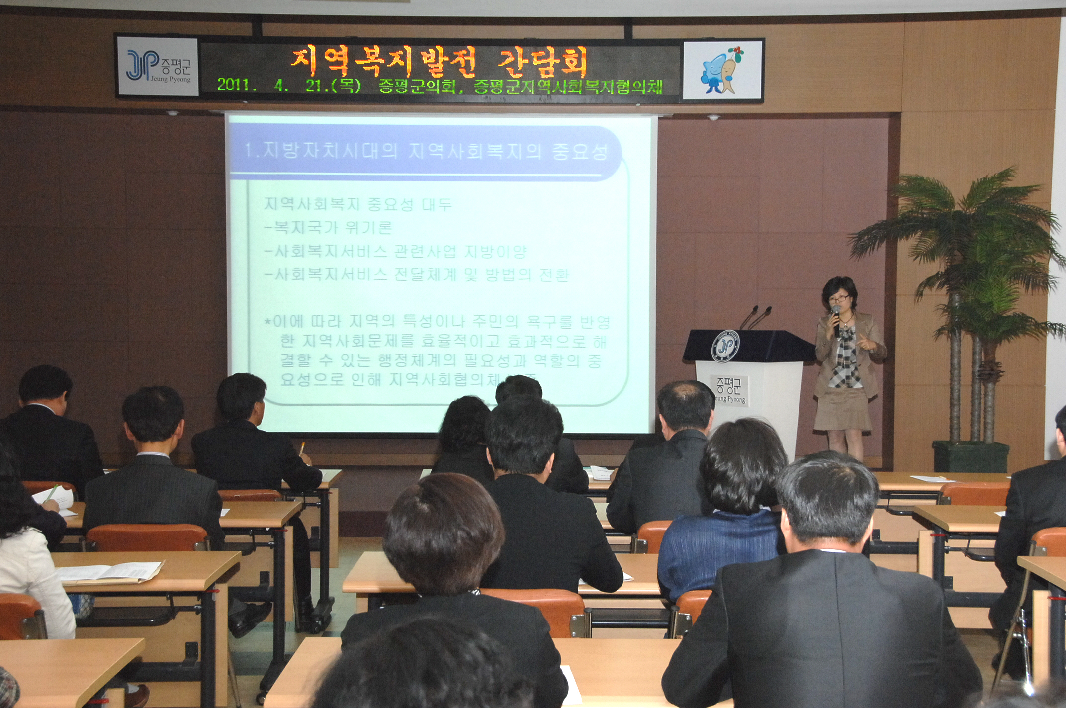 증평군은 21일 오후 2시 군청대회의실에서 지역사회 복지문제에 대해 의견을 나누고 군민들의 실질적인 삶의 질을 향상시키기 위한 지역복지발전 간담회를 개최했다.[보도자료실 참조]