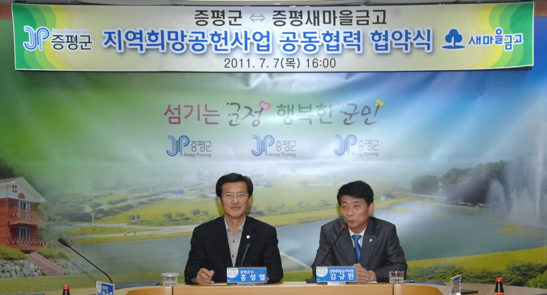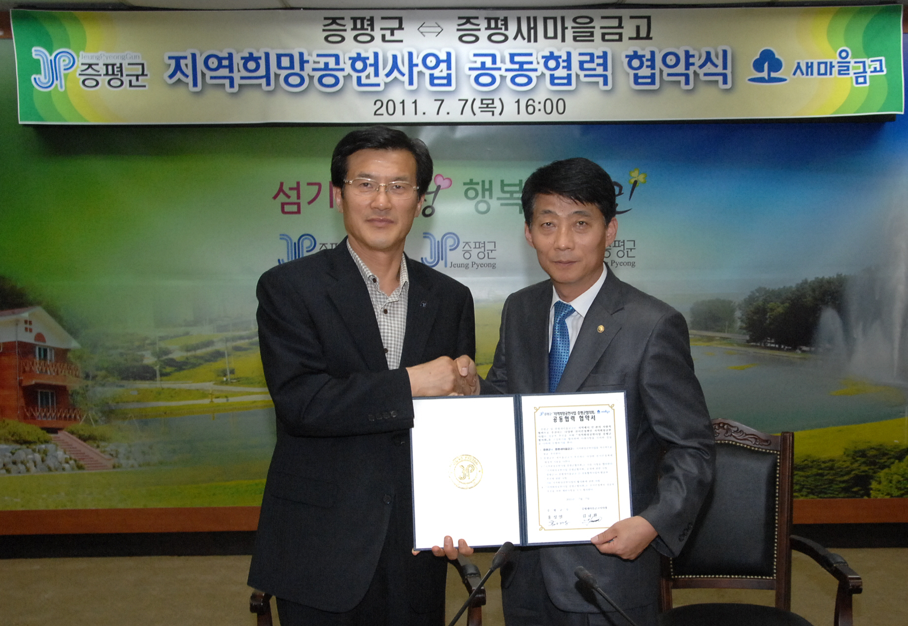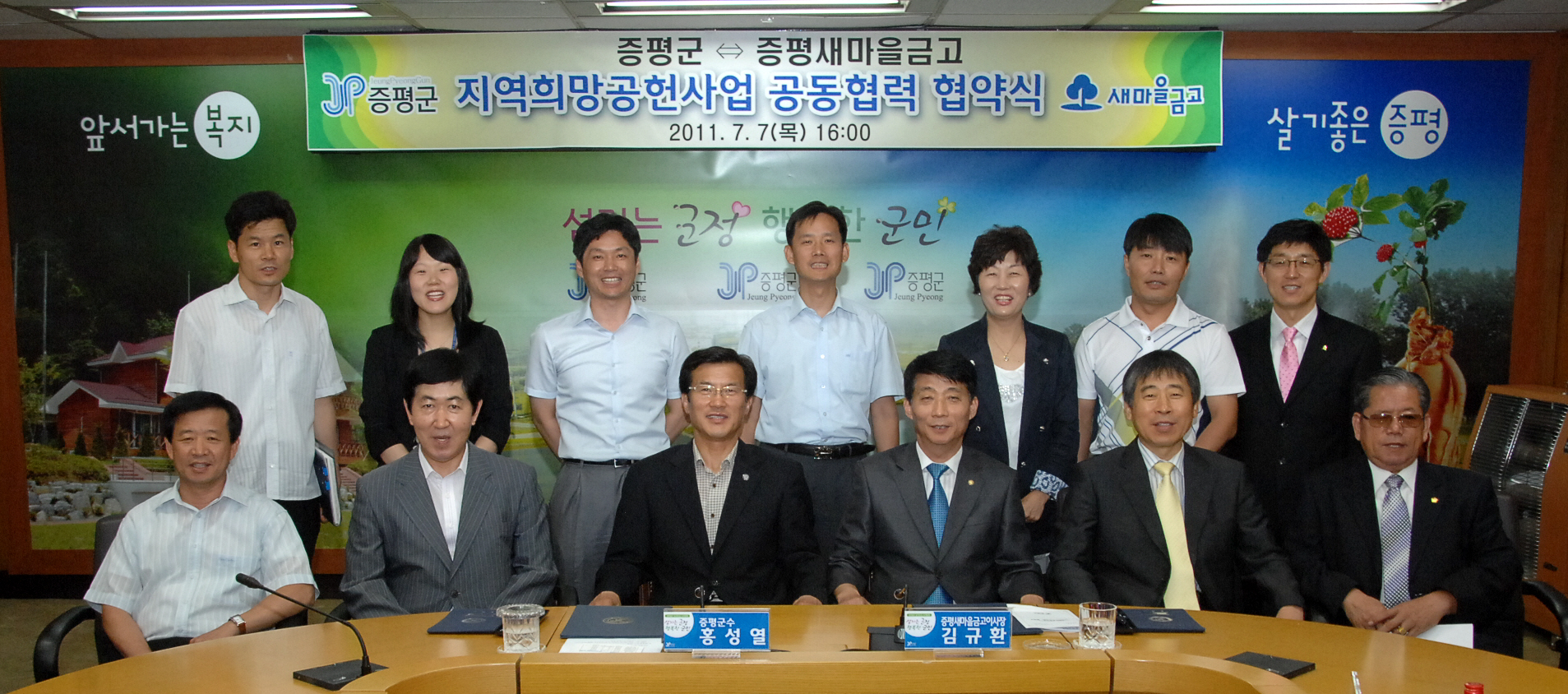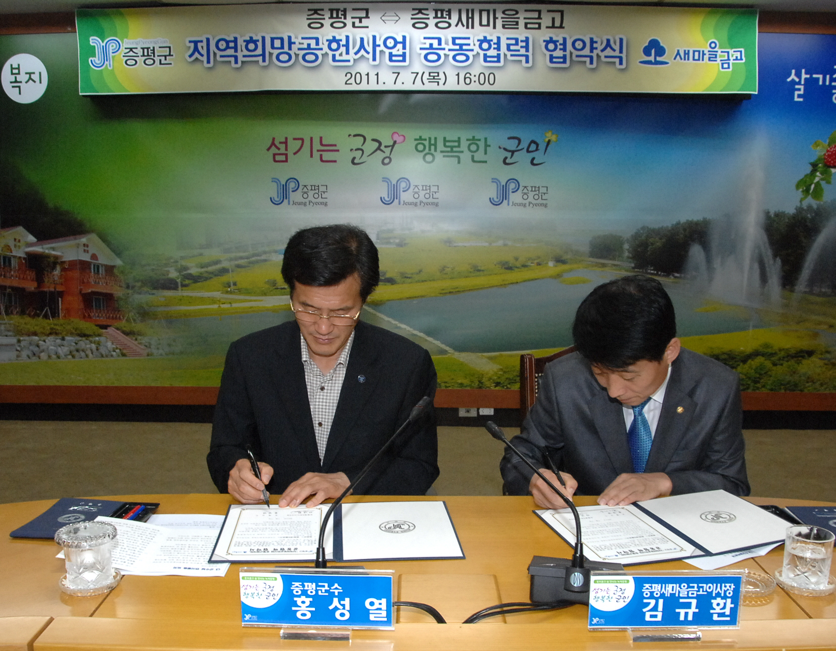 증평군(군수.홍성열)과 증평새마을금고(이사장.김규환)은 7일 오후 4시 군청 소회의실에서 지역희망공헌사업 추진을 위한 공동협약을 체결했다.[보도자료실 참조]