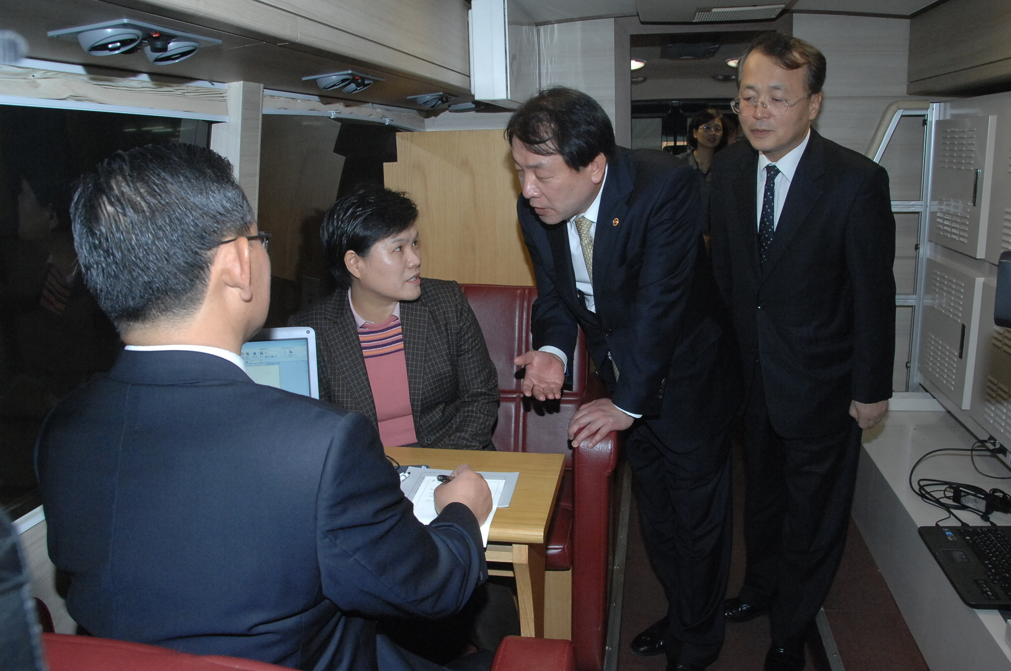 1일 권재진 법무부장관은 증평군 장뜰전통시장 다목적광장에 설치된 대한법률구조공단의 이동법률상담소를 방문해 법률상담서비스에 참관하고 법률상담을 받기 위해 상담소를 방문한 주민들과 공단 관계자를 격려했다. [보도자료실 참조]