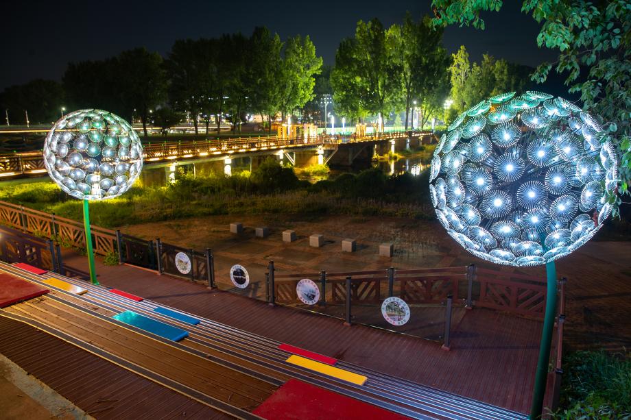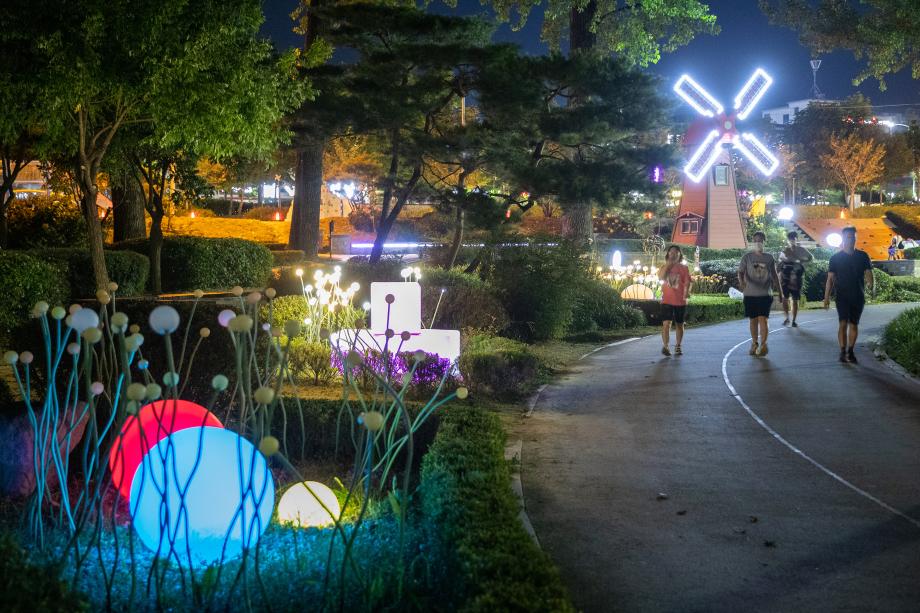 증평군 보강천의 야경이 밤마다 주민들의 무더위를 날리고 있다.