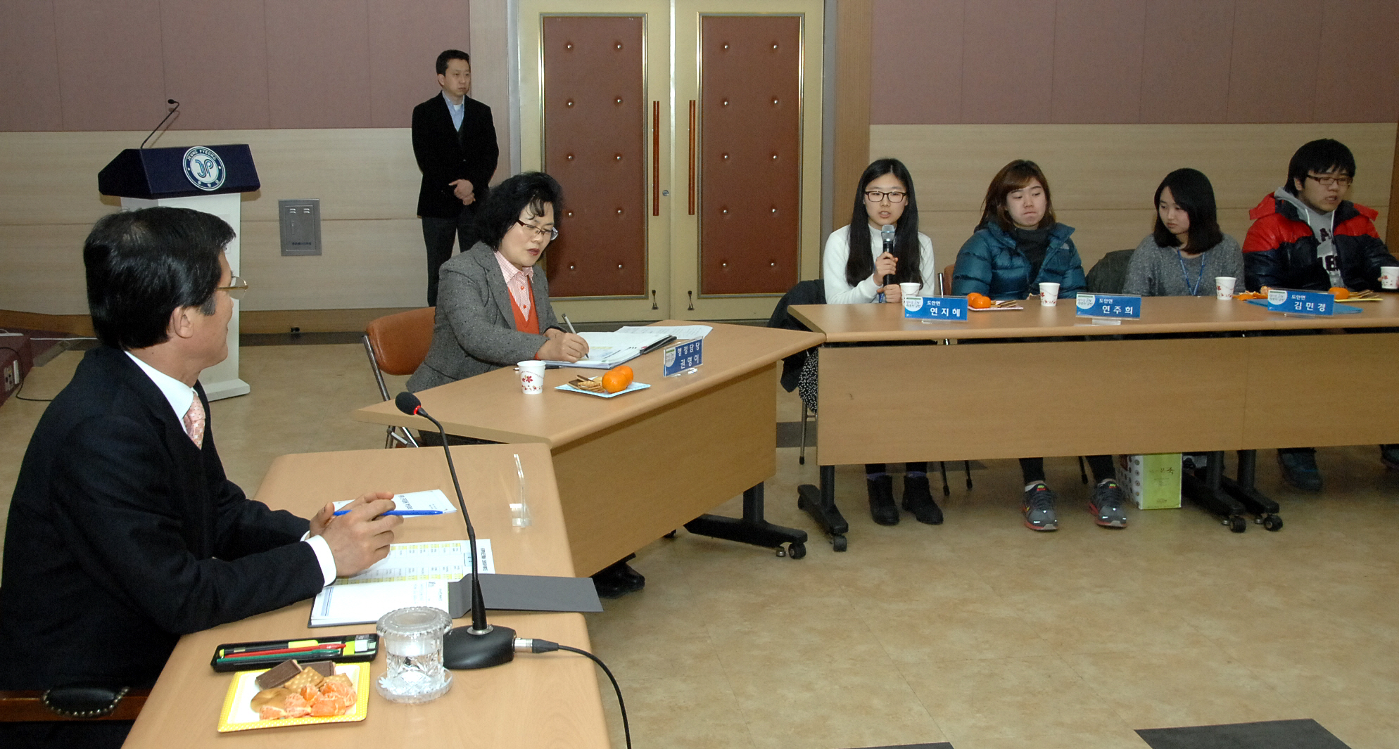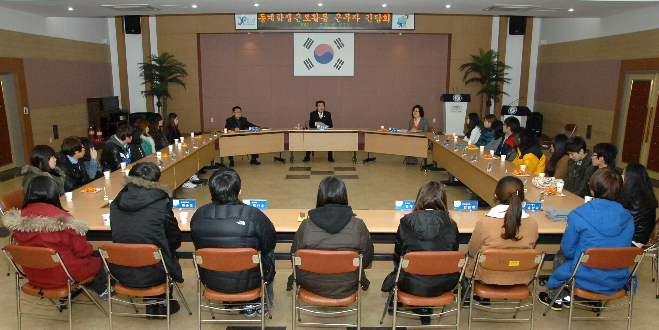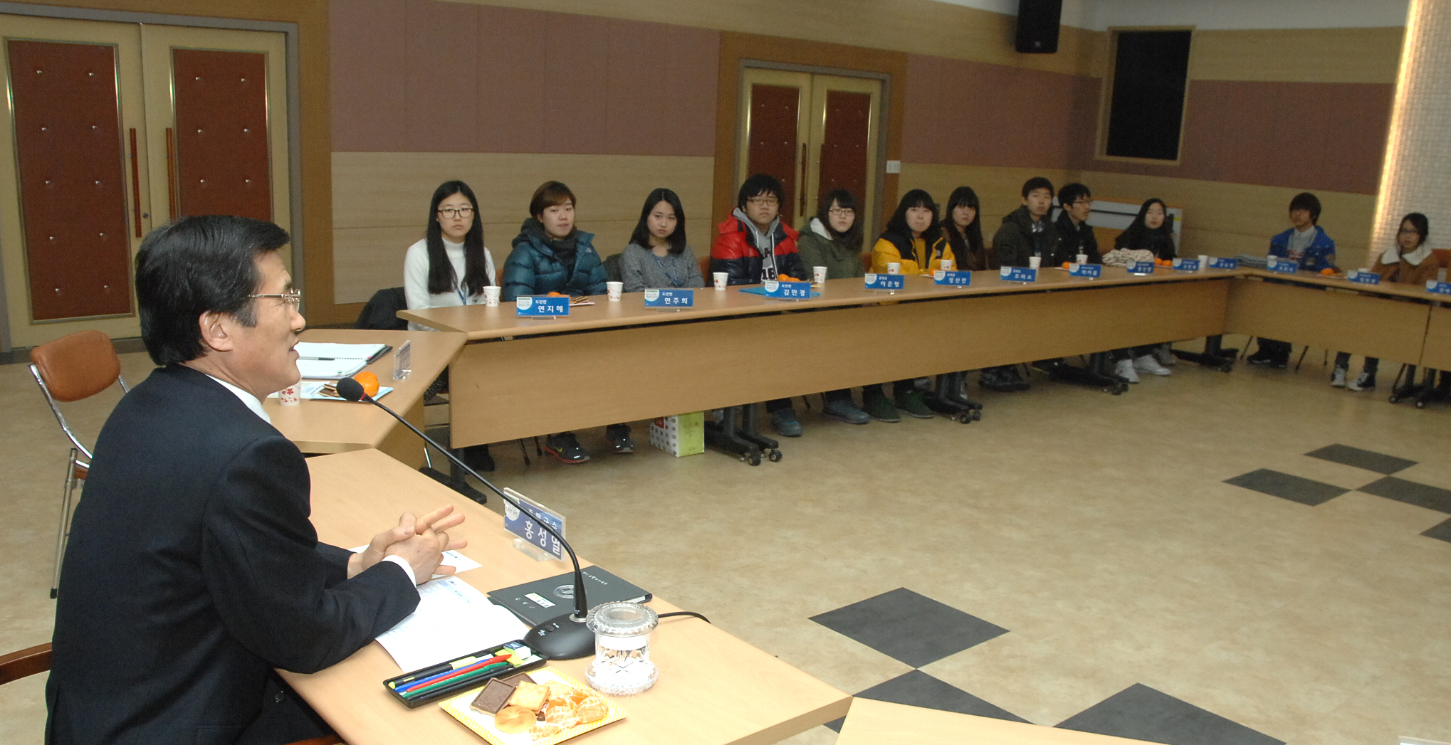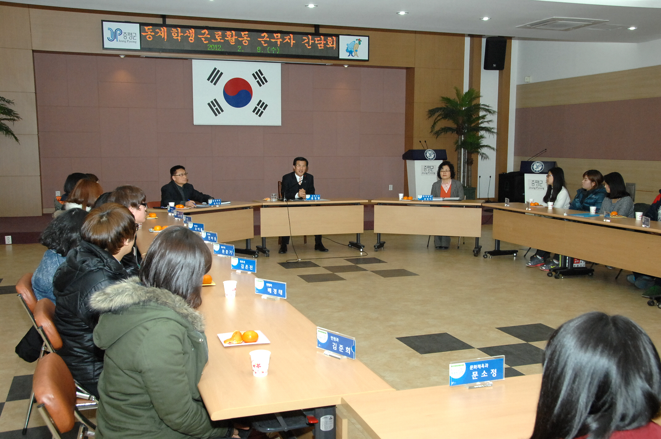 동계학생근로활동 근무자 간담회가 8일 오후 2시 군청2층 회의실에서 홍성열군수, 연재윤 행정과장을 비롯한 군 관계자와 근로 활동 학생 등 30여명이 참석한 가운데 열렸다.