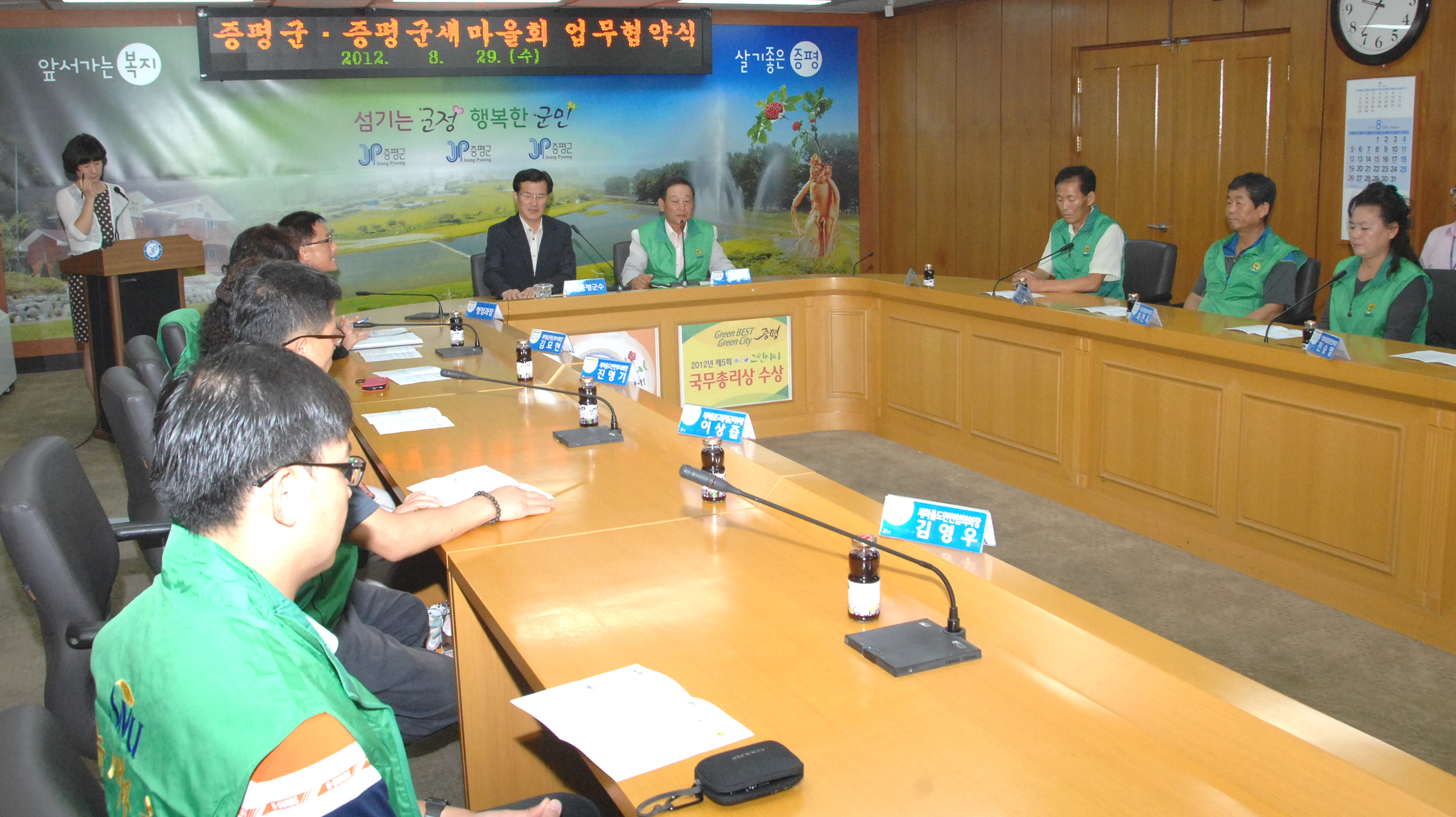 증평군(군수 홍성열)과 증평군새마을회(회장 강성오)는 29일 오전 9시 30분 군청 소회의실에서 홍성열 증평군수와 강성오 증평군새마을회장 등 새마을임원 10여명이 참석한 가운데 주민주도형 선진마을공동체 육성을 위한 ‘뉴새마을만들기’ 업무 협약을 체결했다.[보도자료실 참조]