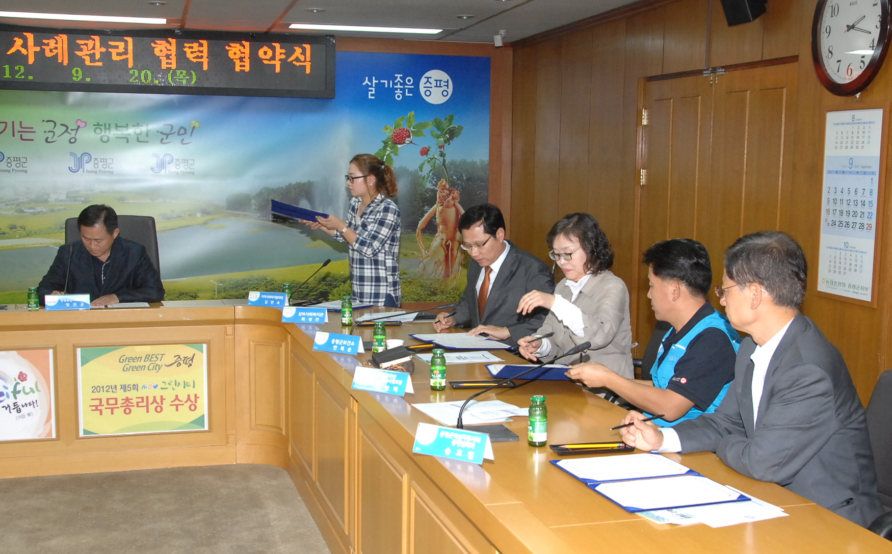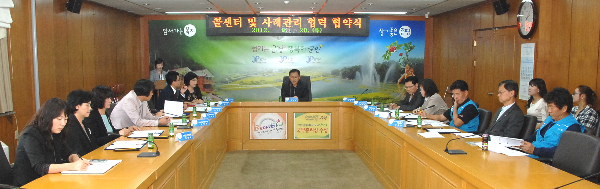 지역복지의 효율성 강화 및 공공자원과 민간자원의 네트워크 형성을 위한 복지통합콜센터 및 사례관리 협력 협약식이 지역 내 사회복지기관 단체장 15여명이 참석한 가운데 20일 오후 2시 증평군청 소회의실에서 열렸다. [보도자료실 참조]