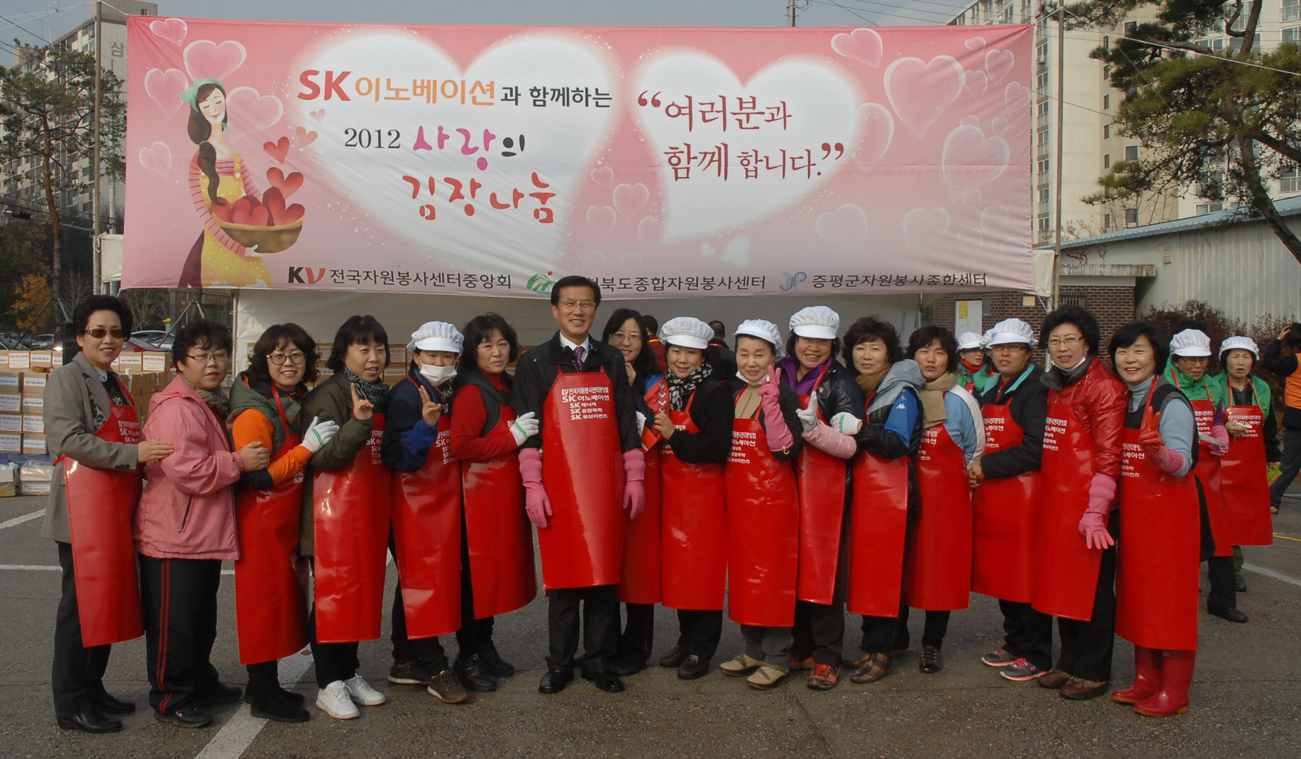 증평군 자원봉사종합센터(센터장 신재영)와 SK이노베이션은 19일 오전 9시부터 증평문화센터 야외광장에서 ‘2012 사랑의 김장나누기 행사’를 실시했다. [보도자료실 참조]