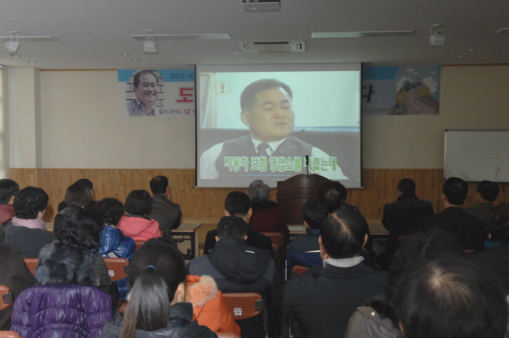 증평군은 13일 오후 3시 증평읍사무소 2층 회의실에서 군민 아카데미 일곱번째 강연으로 보험업계에서 ‘외다리 세일즈왕’으로 통하는 해피라이프 개발원 조용모 원장을 초청해 ‘도전하는 삶은 아름답다’라는 주제로 특강을 개최했다. [12월6일 보도자료 참조]