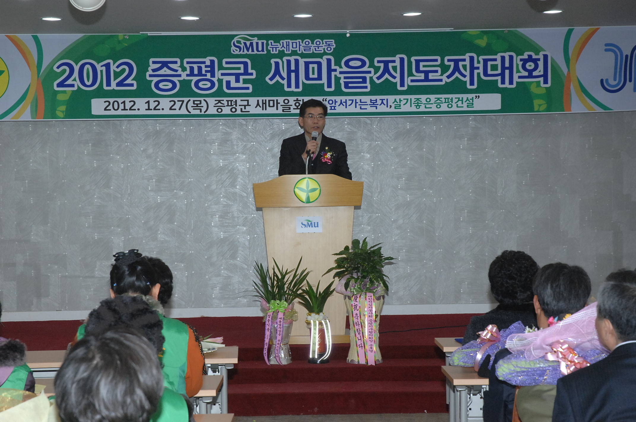 증평군새마을회(회장 강성오)는 27일 오전 11시 증평군여성회관에서 지도자 및 부녀회원 등 100여명이 참석한 가운데 ‘2012 증평군새마을지도자 대회’를 개최했다. [보도자료실 참조]