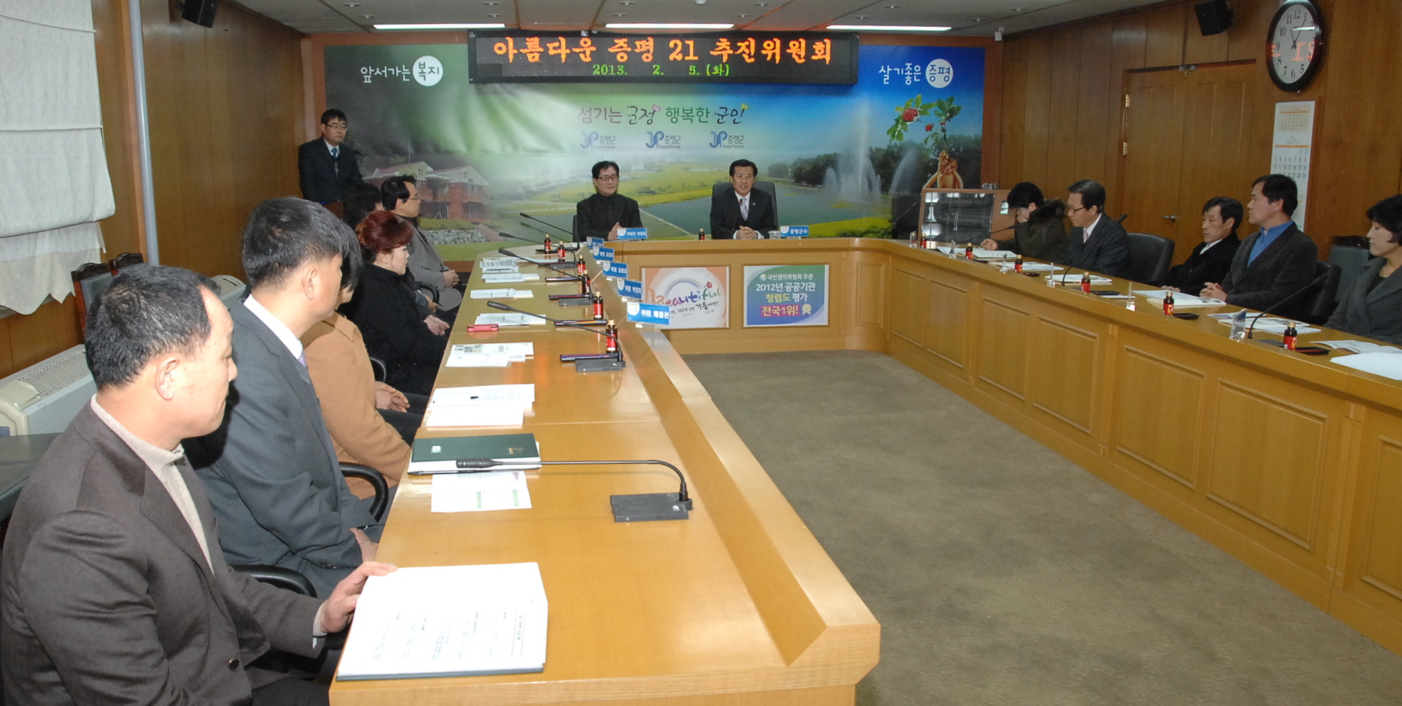 증평군은 저탄소 녹색성장 실현을 위해 5일 오전11시 소회의실에서 아름다운 증평21 추진위원회 회의를 개최했다.[보도자료실 참조]
