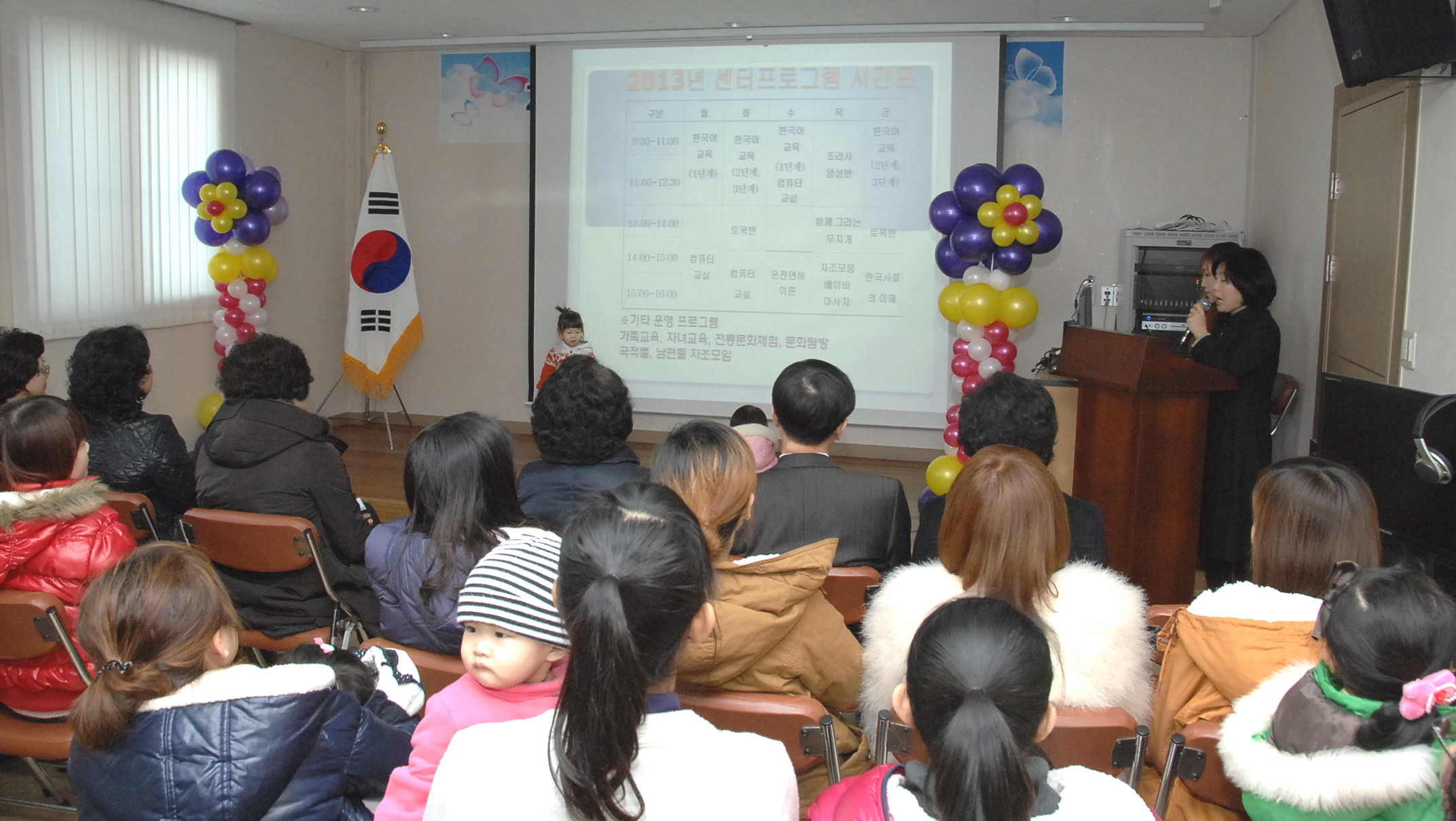 증평군 다문화가족지원센터는 13일 오전 10시30분 다문화가족지원센터 교육실에서 2013년도 상반기 프로그램 개강식을 개최했다.[보도자료실 참조]