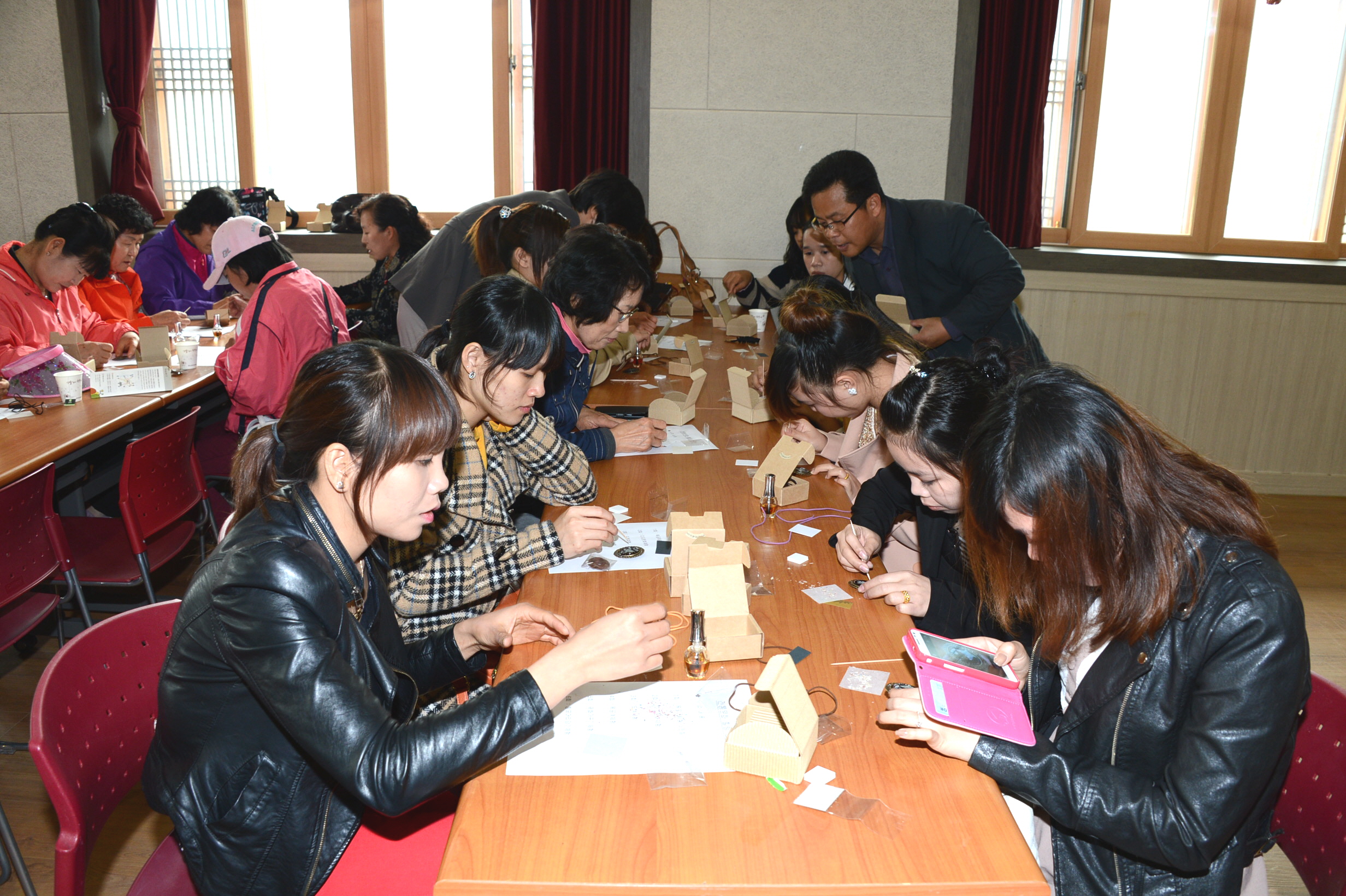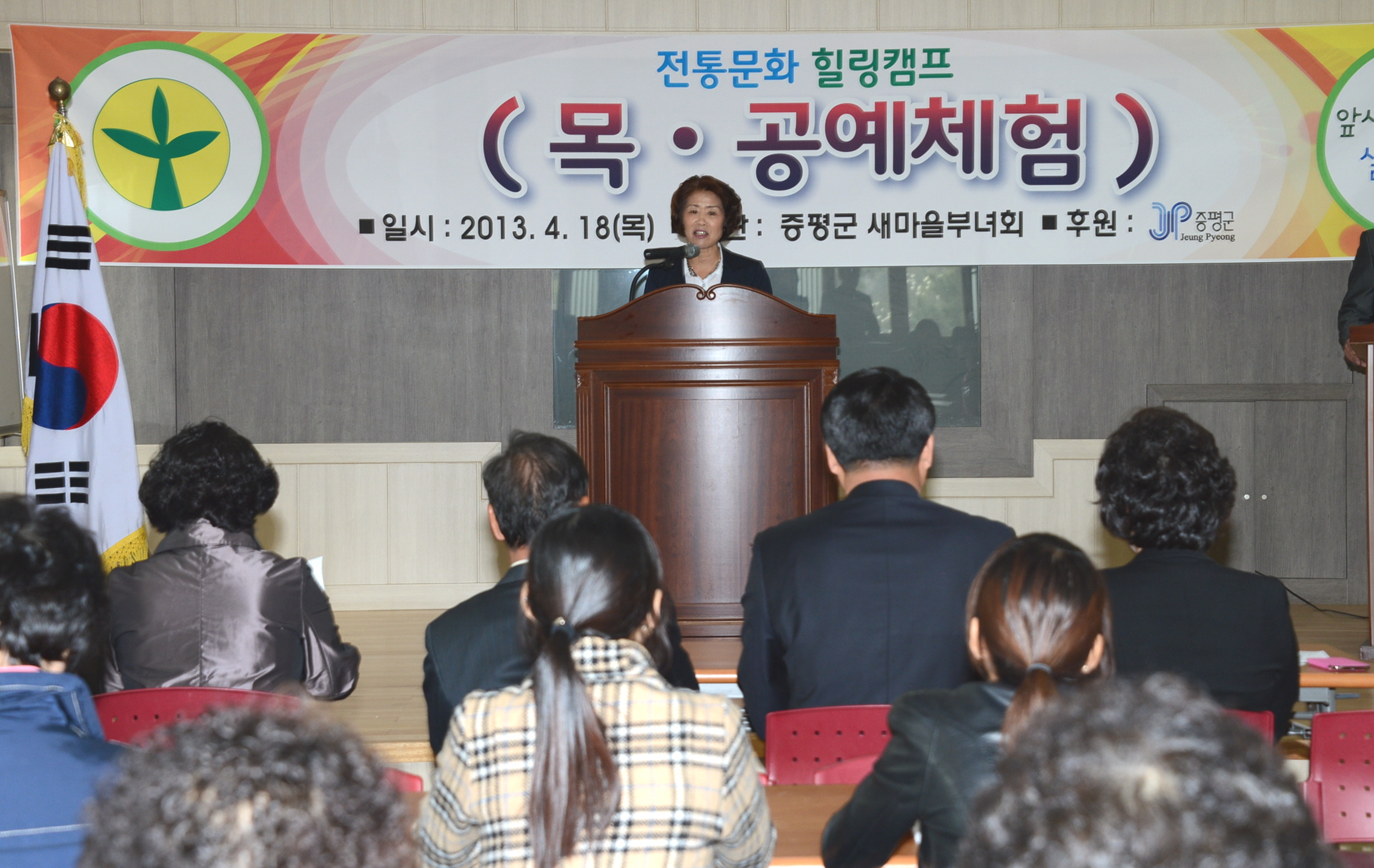 증평군새마을부녀회(김묘현 회장)에서 주관하는 고품격 전통문화 힐링캠프 개강식이 18일 오전 11시분 증평 민속박물관 목공예 체험관에서 캠프참가자 40여명이 참석한 가운데 열렸다. [보도자료실 참조]
