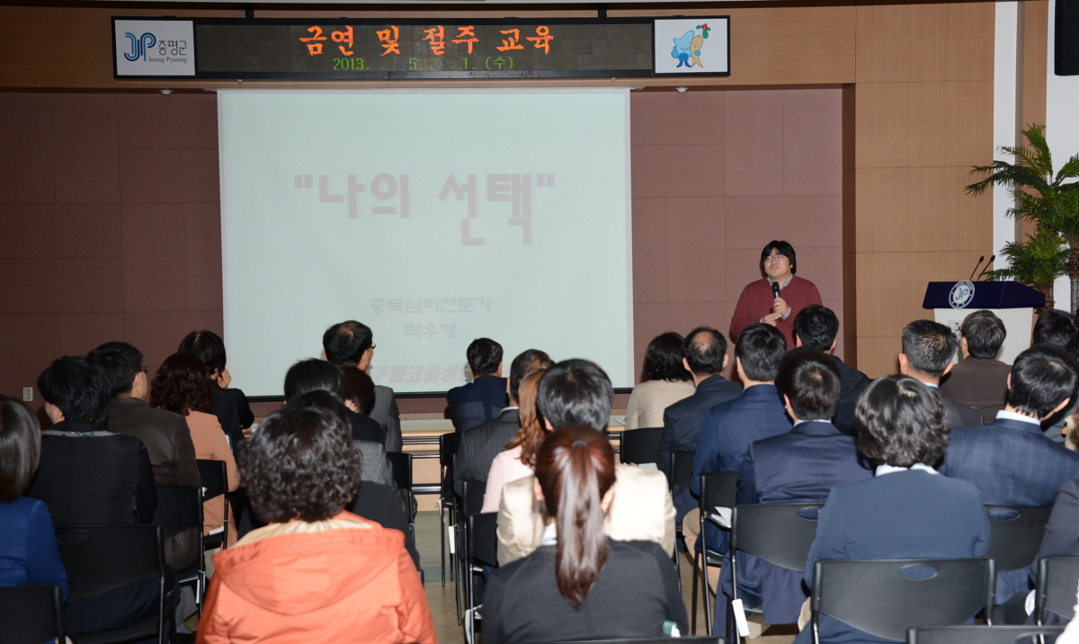 증평군보건소는 1일 군청 대회의실에서 100여명의 공직자를 대상으로 건강한 직장 만들기 일환으로 흡연예방에 대한 강연을 실시했다. [보도자료실 참조]
