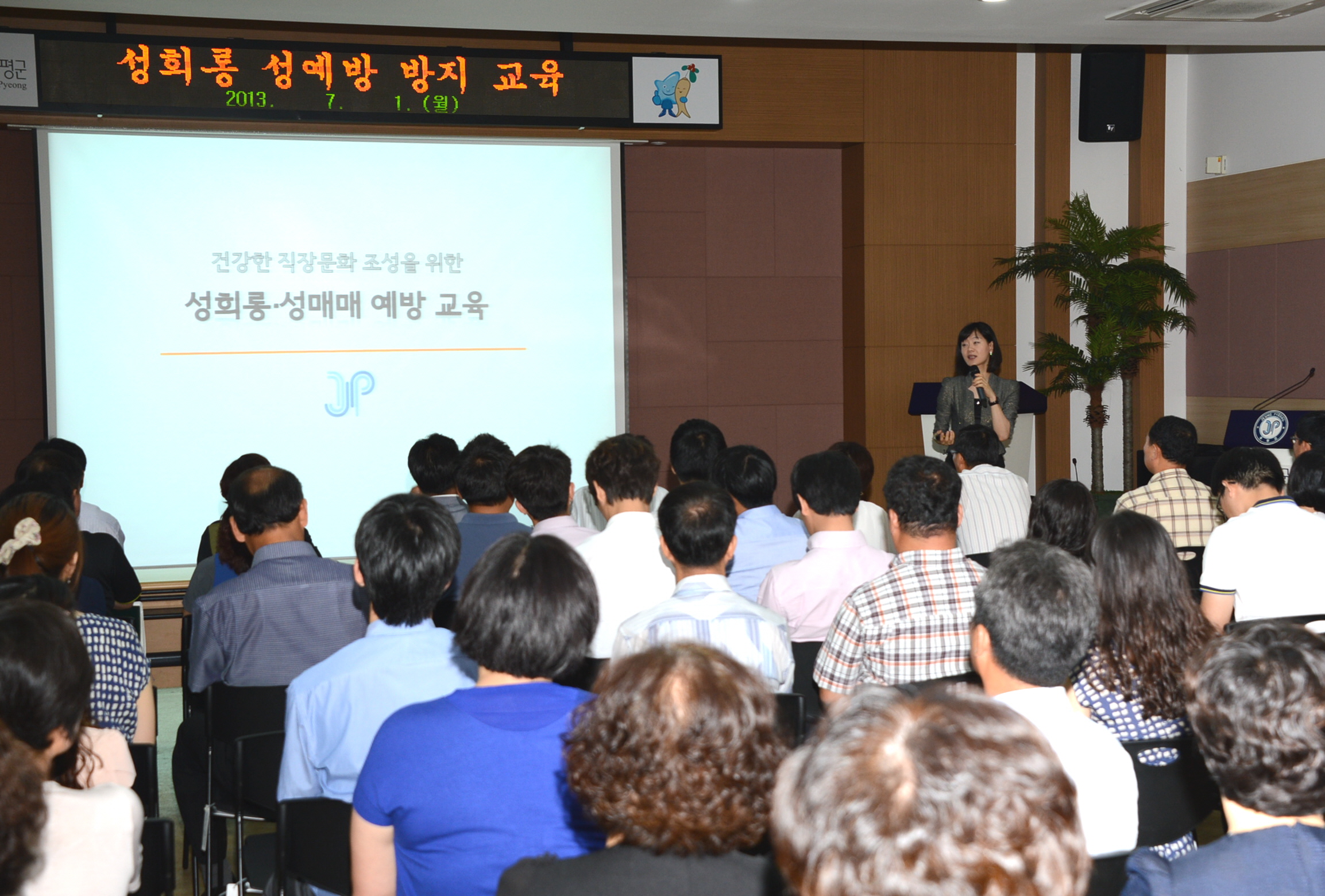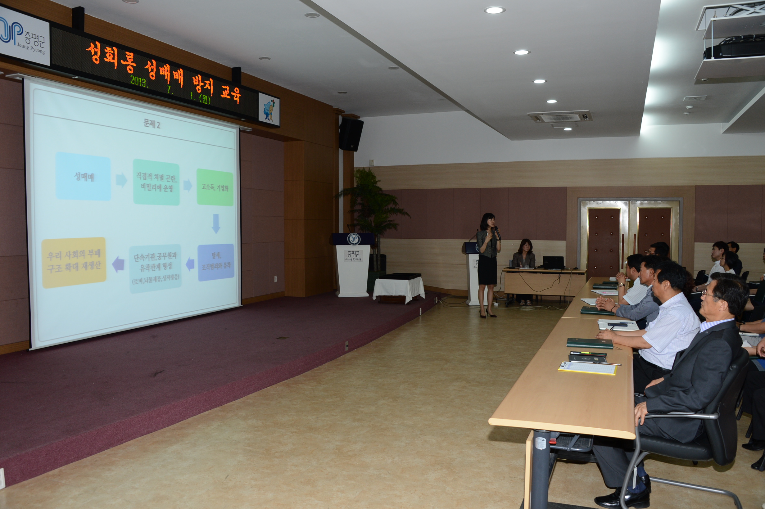 증평군은 1일 오전 9시 군청 대회의실에서 증평군 소속 전 직원을 대상으로 ‘직장 내 성희롱 및 성매매 예방 교육’을 실시했다. [보도자료실 참조]