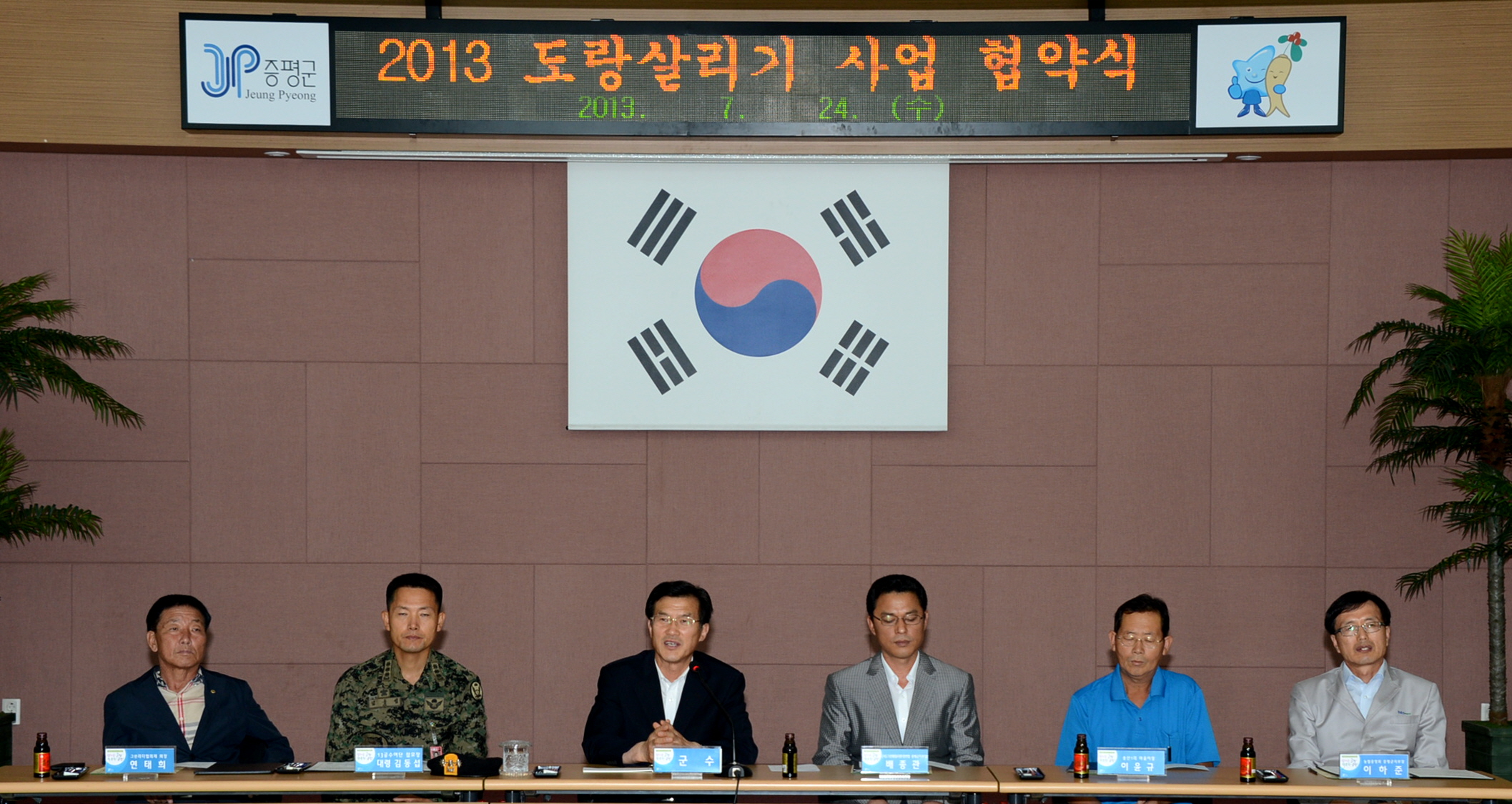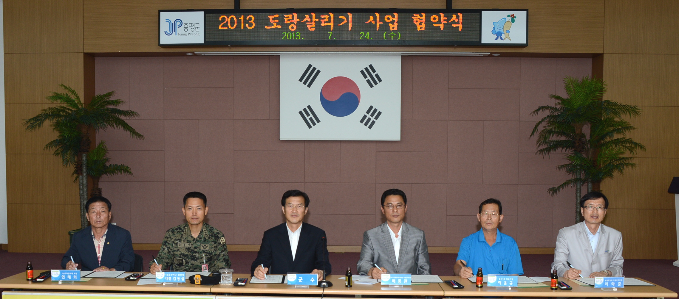 증평군은 오염되거나 훼손된 마을 주변 도랑을 깨끗하고 생태적인 생활공간으로 복원하기 위해 (사)그린훼밀리환경연합 증평군지부와 13공수여단, 송산1리주민, 그린리더협의체회, 농협중앙회증평군지부와 ‘2013년 도랑 살리기 사업 협약식’을 24일 개최했다. [보도자료실 참조]