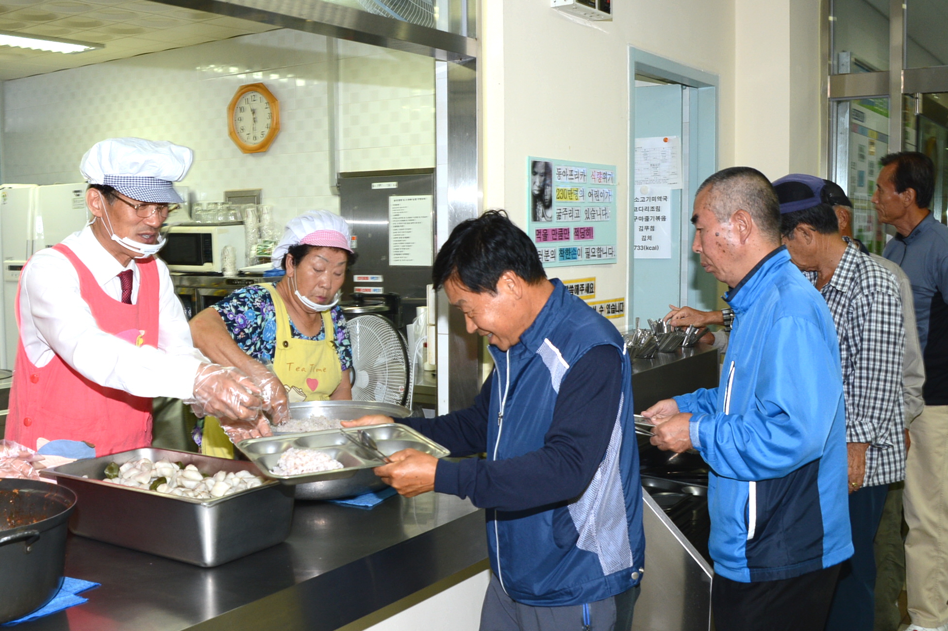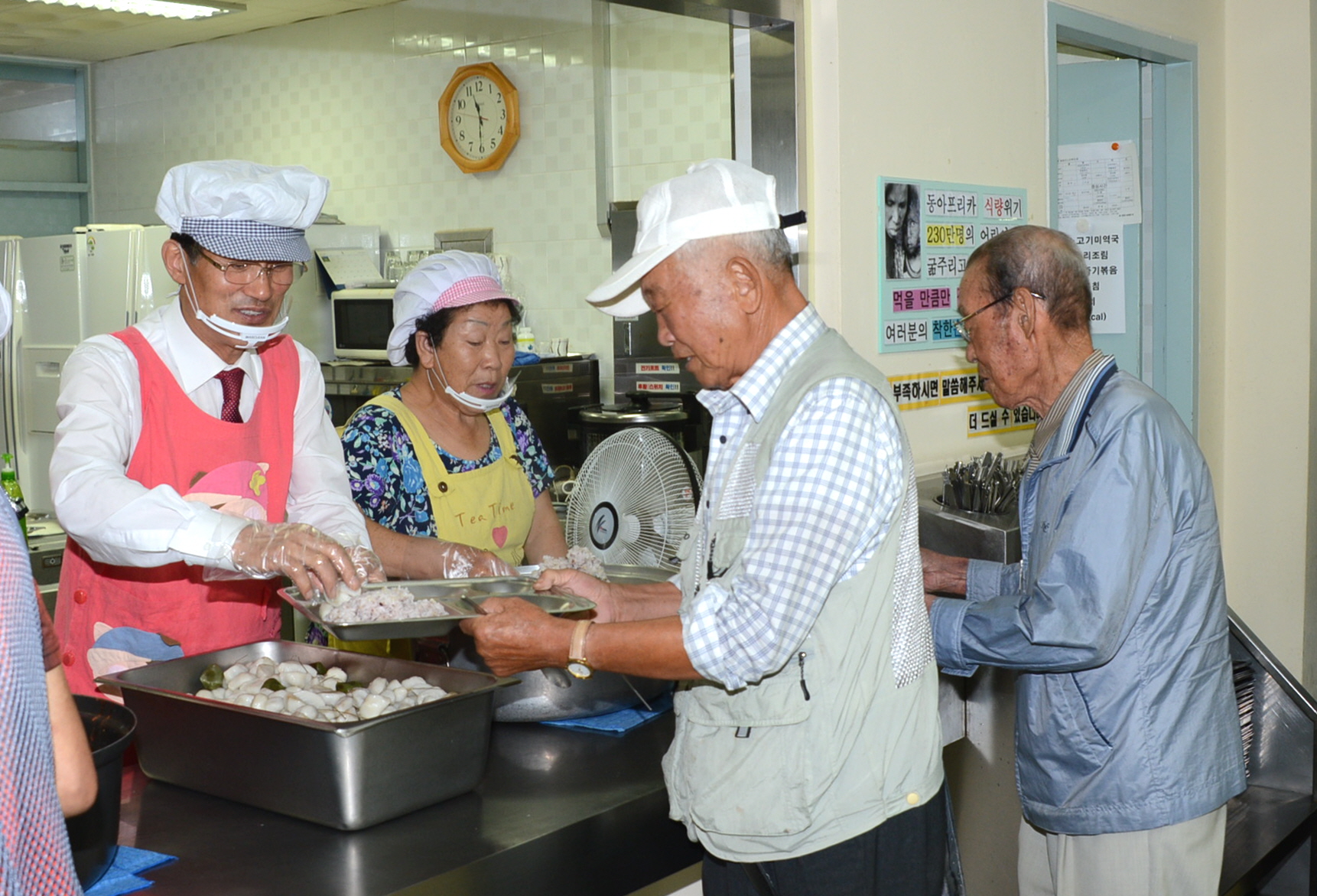 홍성열증평군수, 노인대학 특강 및 급식봉사