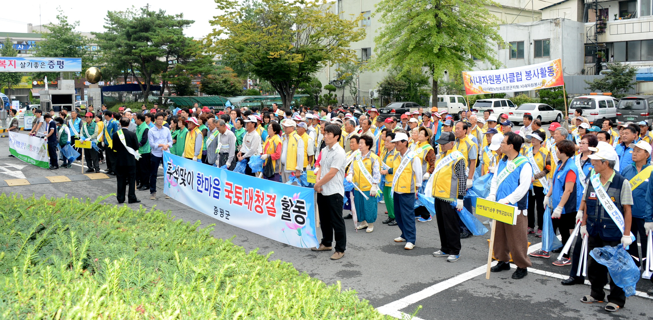 증평군은 12일 추석을 맞아 귀성객에게 깨끗한 증평의 모습을 보여주기 위해 공무원, 군부대, 사회단체, 환경단체, 각 기관 등 500여명이 참여한 가운데 한마음 대청결 활동을 실시했다. [보도자료실 참조]