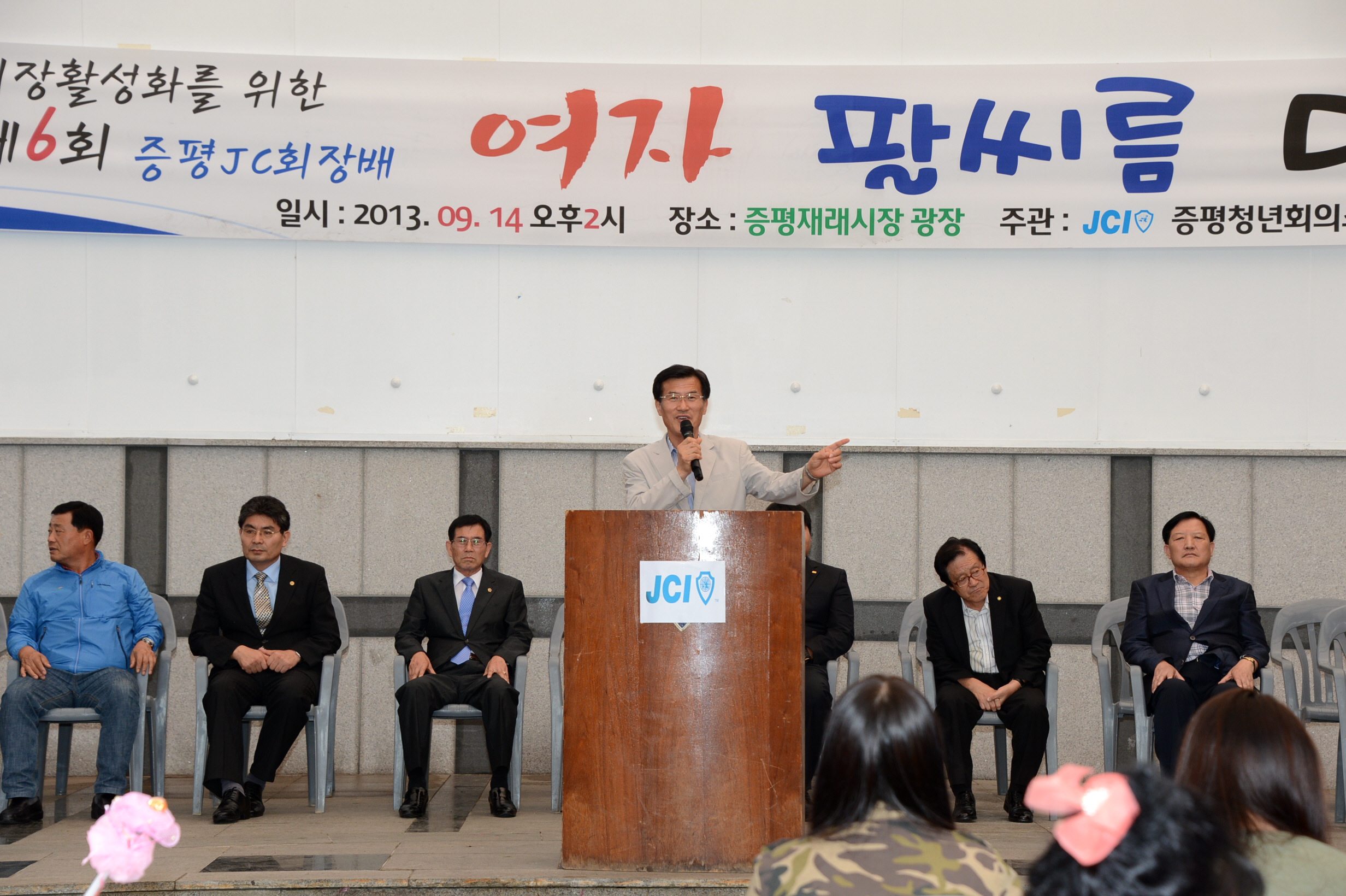 증평군청년회의소(회장 손영주)가 주관하는 제6회 여자팔씨름대회가 재래시장활성화를 위해 14일 토요일 추석을 맞아 전통시장 다목적광장에서 열렸다.[보도자료실 참조]