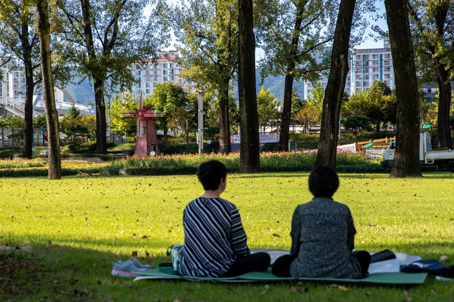 보강천 미루나무 숲 잔디밭이 증평주민의 안락한 쉼터로 다시 돌아왔다.