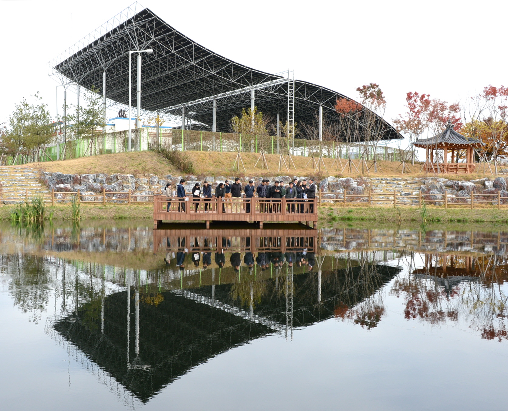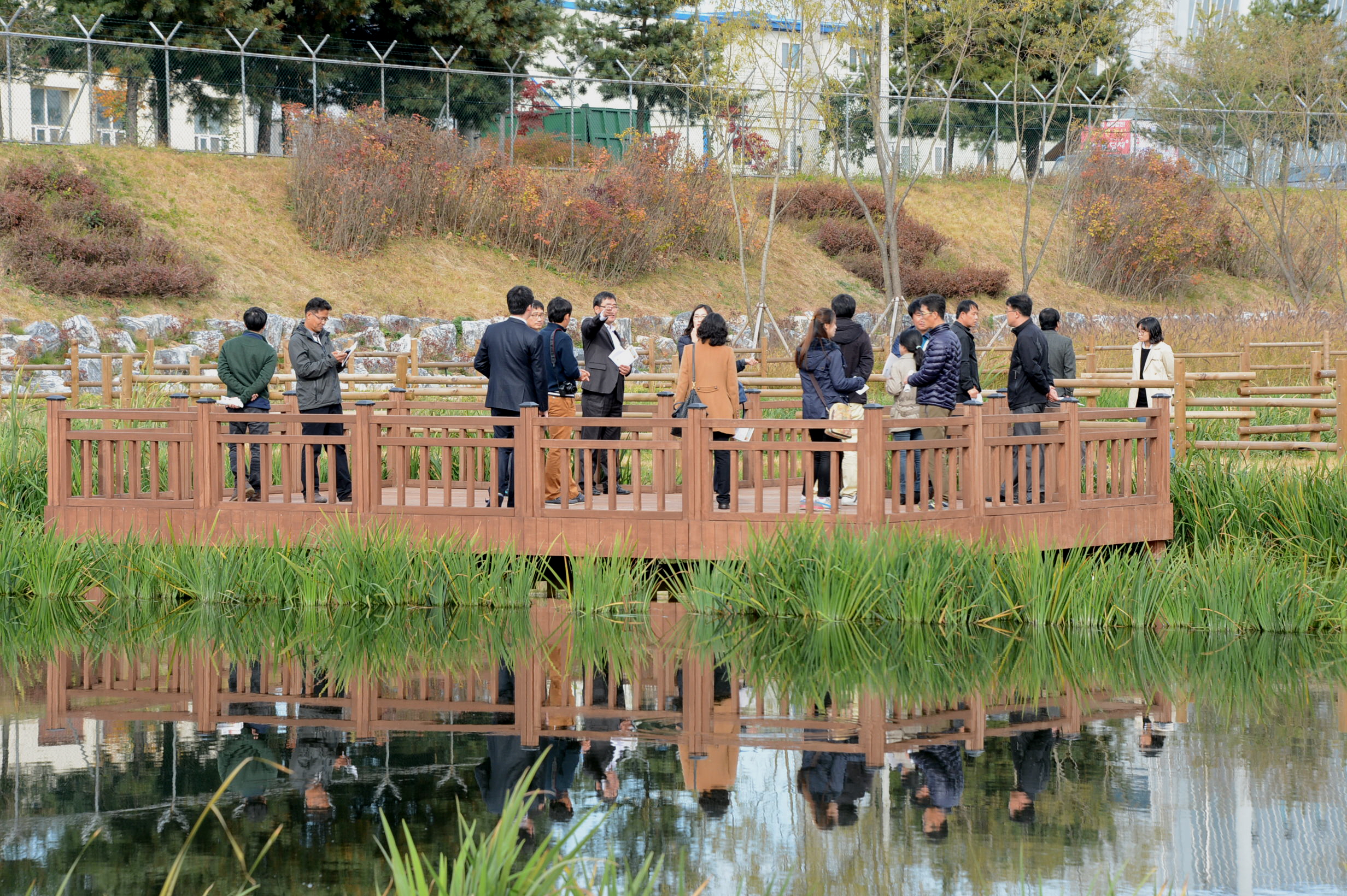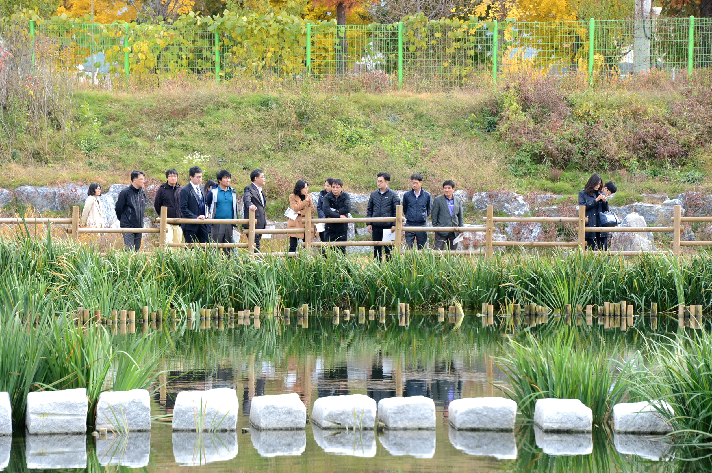 원주지방환경청에서는 수질오염총량관리제 담당자 전문교육의 교육과정으로 8일 증평군을 방문해 국내 최대규모의 비점오염저감시설을 견학했다. [보도자료실 참조]