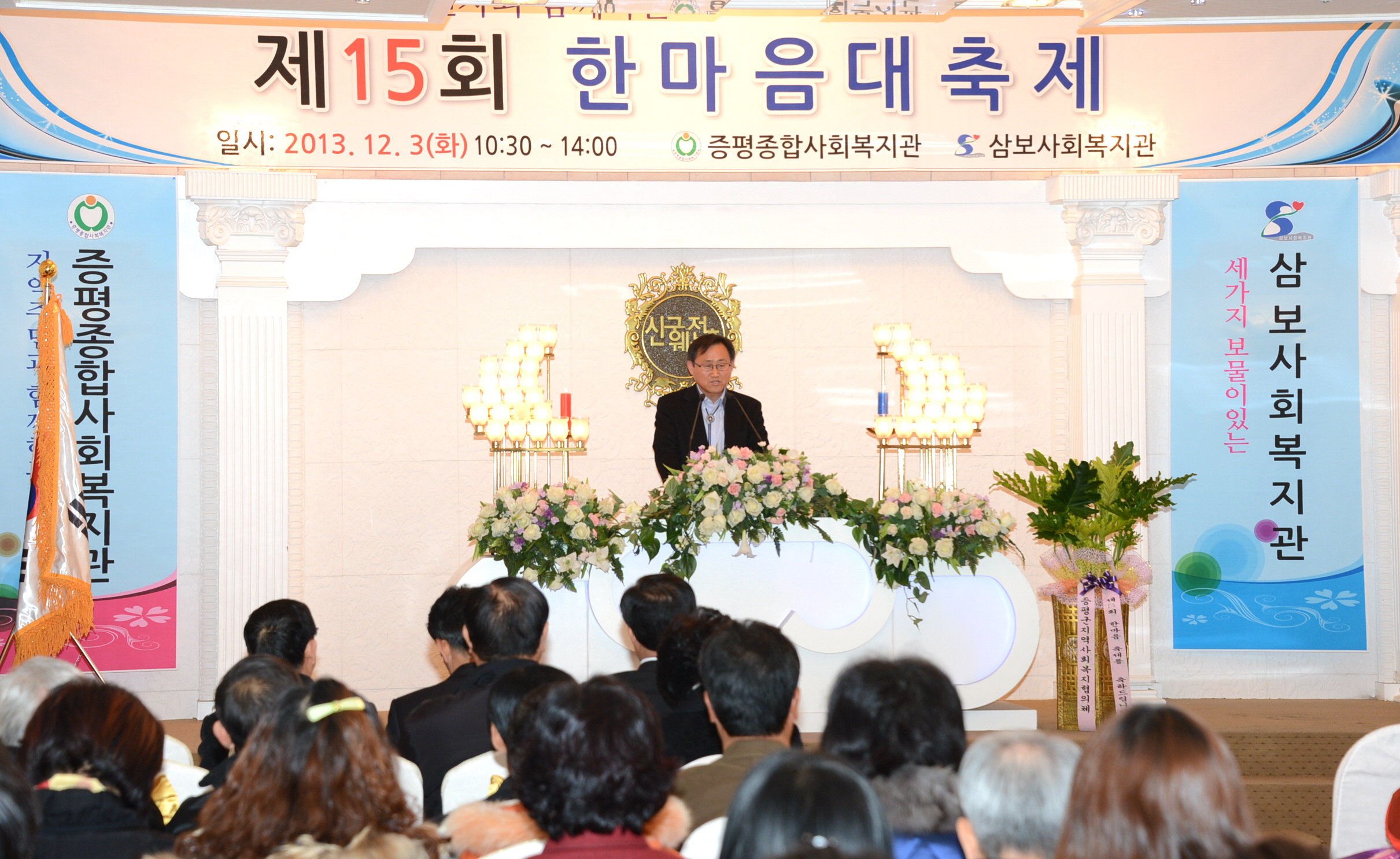 증평군에서는 자원봉사자와 후원자, 봉사대상자 등 100여명이 참석한 가운데 15회 한마음대축제 행사가 3일 신궁전웨딩홀에서 열렸다. [보도자료실 참조 ]