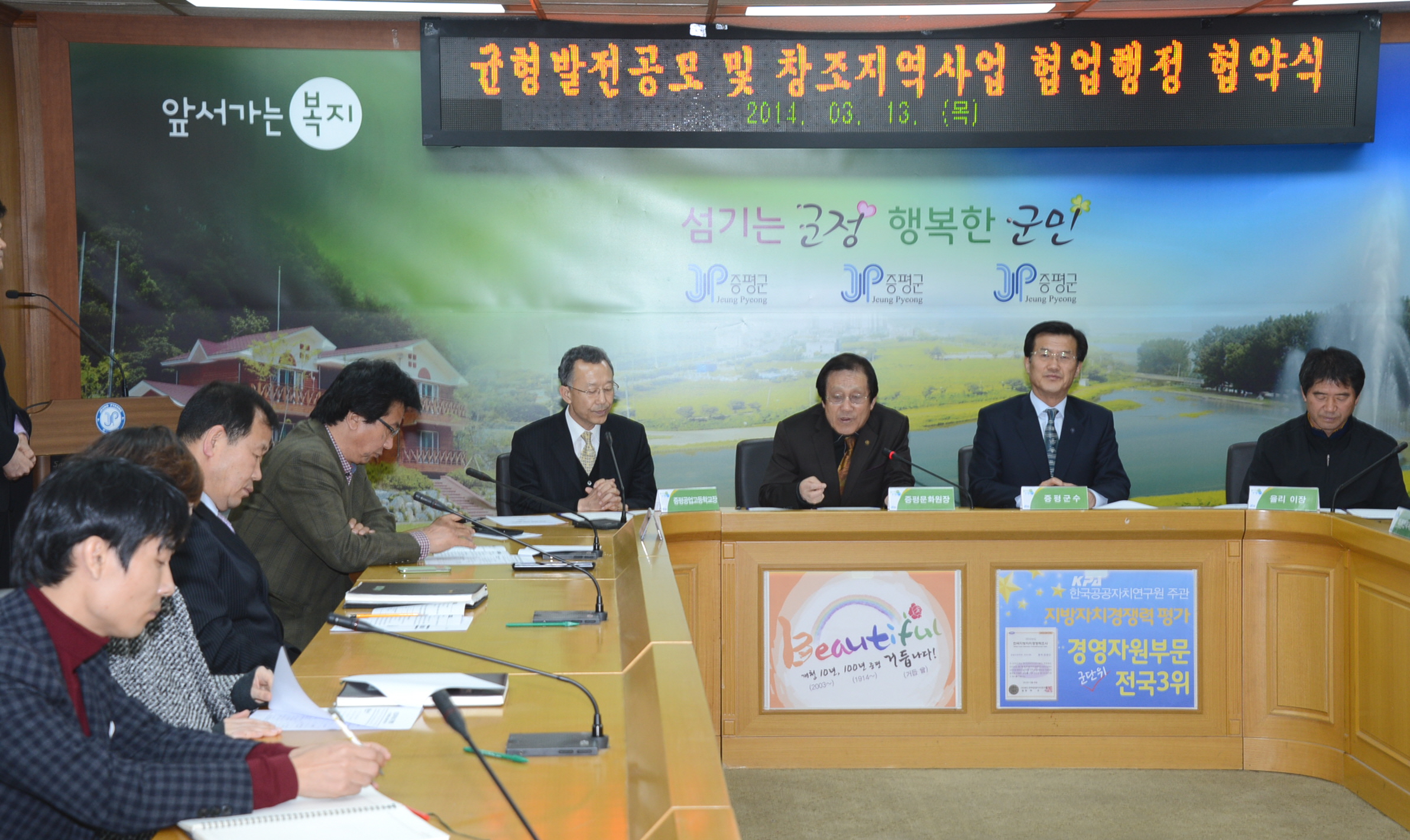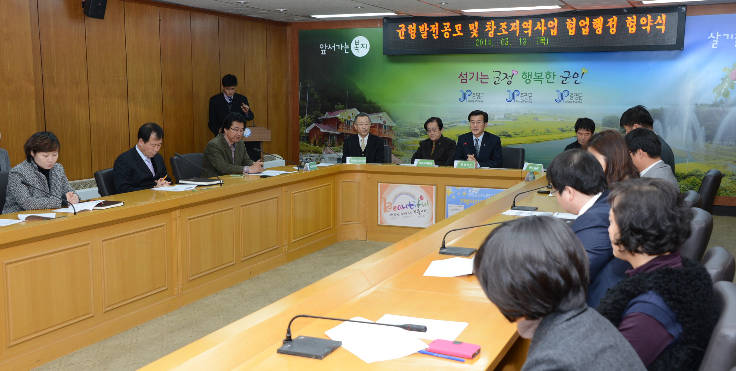 증평군은 13일 군청 소회의실에서 창조지역사업 및 지역균형발전 공모사업의 성공적 추진을 위한 기관·단체간 업무협약과 추진 부서간 협업행정 협약을 체결했다. [보도자료실 참조]