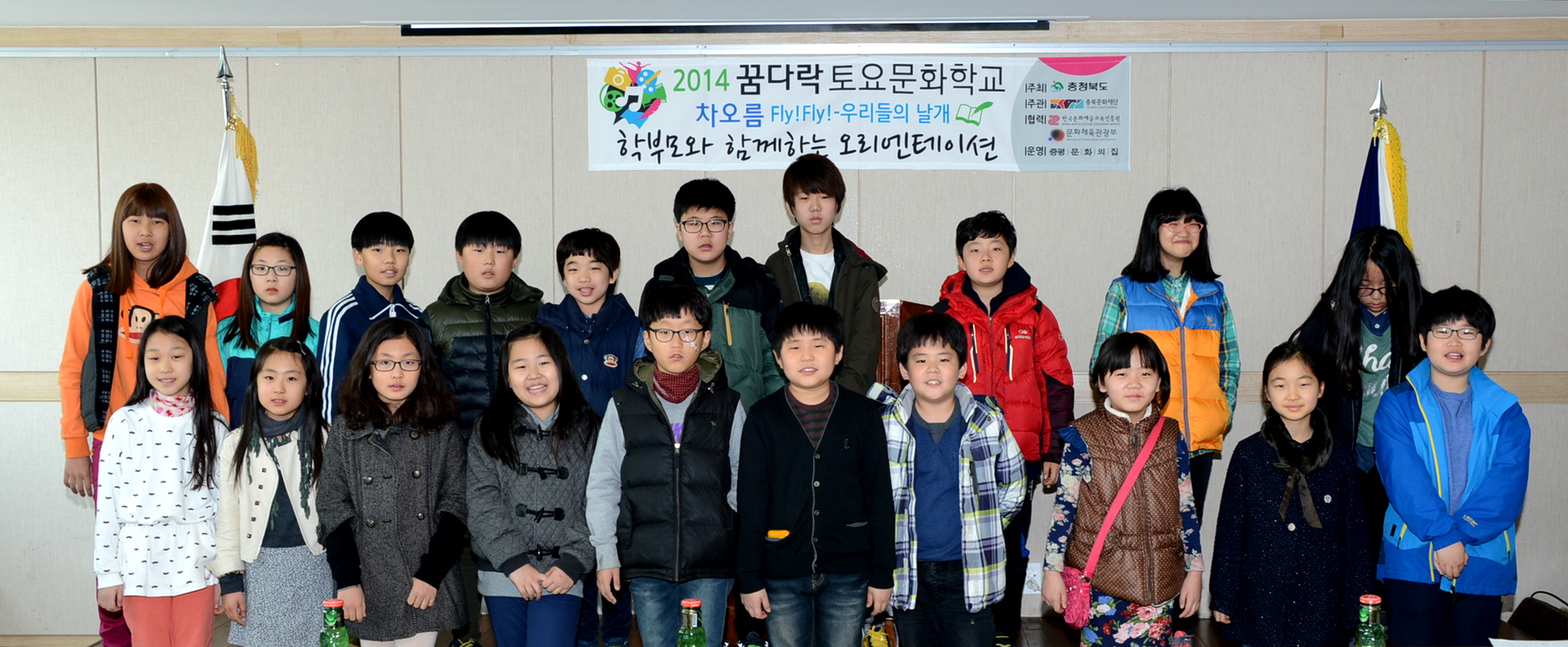 증평 문화의 집(원장 최건성)은 15일 오전10시 관내 초등학교 4~6학년 20명과 학부모 등 50여명이 참석한 가운데 ‘2014 꿈다락 토요문화학교’ 개강식을 가졌다.[보도자료실 참조]