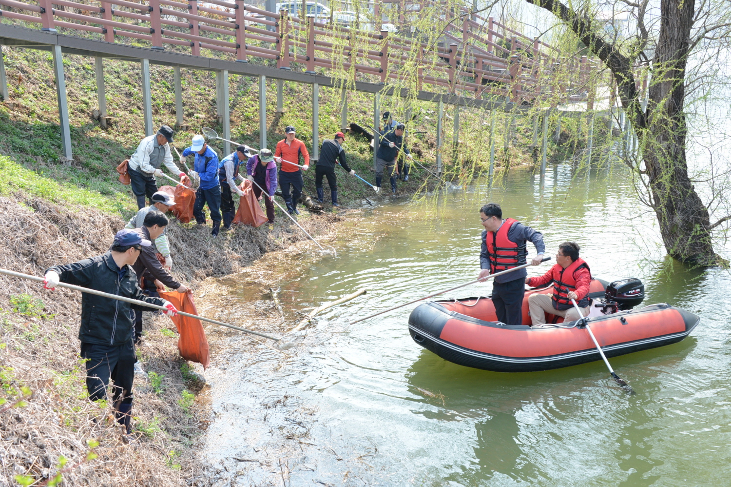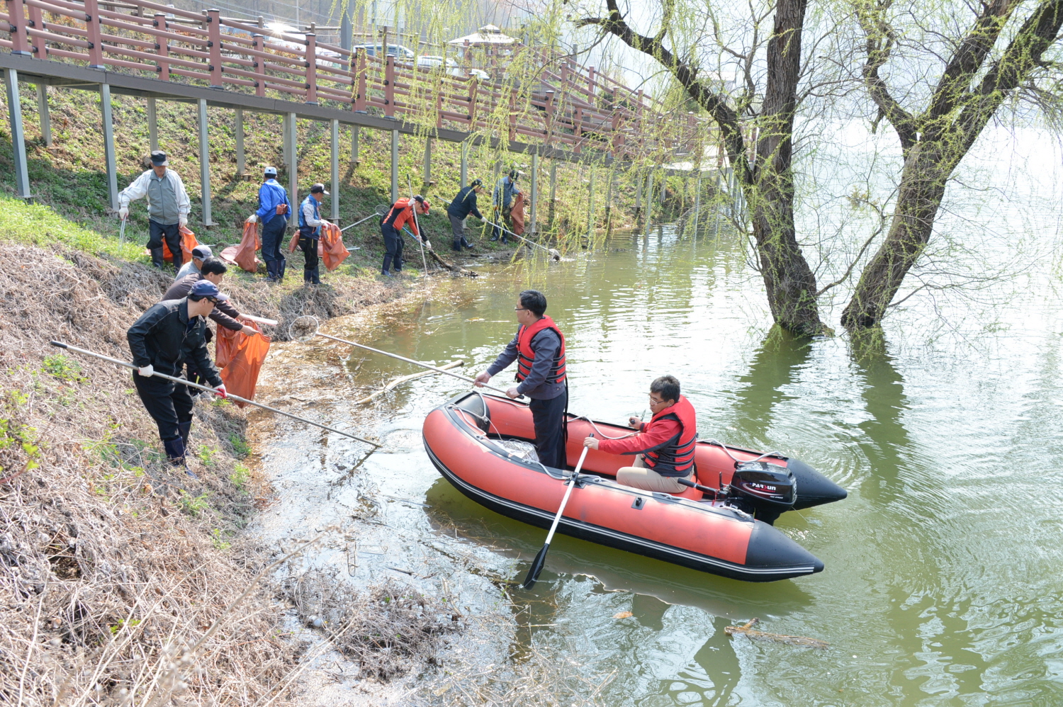 증평군 환경과 공무원 및 환경미화원 등 20여명은 2일 증평읍 율리 삼기저수지일원에서 환경정화 활동을 실시했다. [보도자료실 참조]