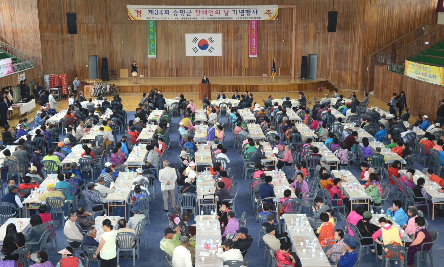 (사)충북장애인증평군연합회(연영찬 연합회장 직무대행) 주관으로 장애인에 대한 편견없는 사회분위기 조성, 장애인들의 삶에 희망과 용기 및 재활·자립의욕을 북돋아 주기 위해 23일 오전 11시 증평군생활체육관에서 제34회 장애인의 날 기념행사가 열렸다. [보도자료실 참조]