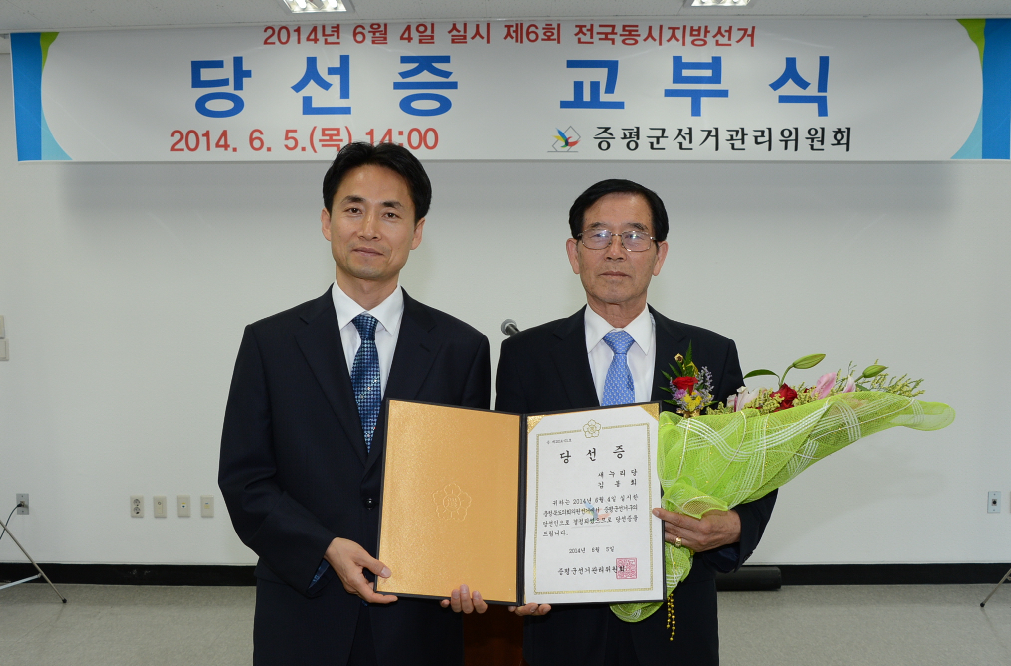 제6회 전국동시지방선거 당선증 교부식이 5일 오후2시 증평읍 초중리 증평군선거관리위원회 2층 회의실에서 열렸다.