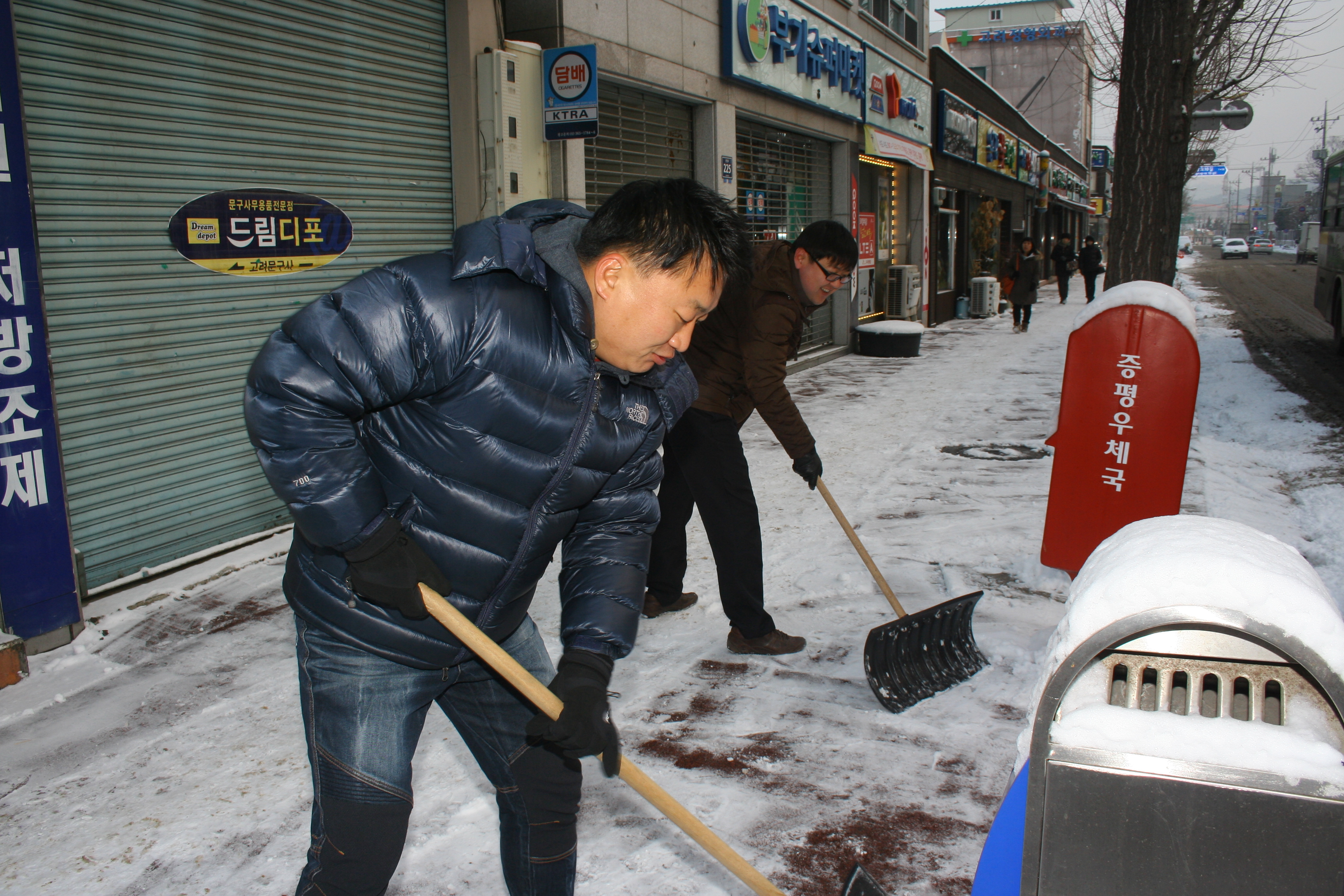 증평군이 3일 7시 현재 3.5cm의 많은 적설량을 기록했지만 신속한 제설작업으로 주민들로부터 호평을 받았다. [증평보도자료실 참조]