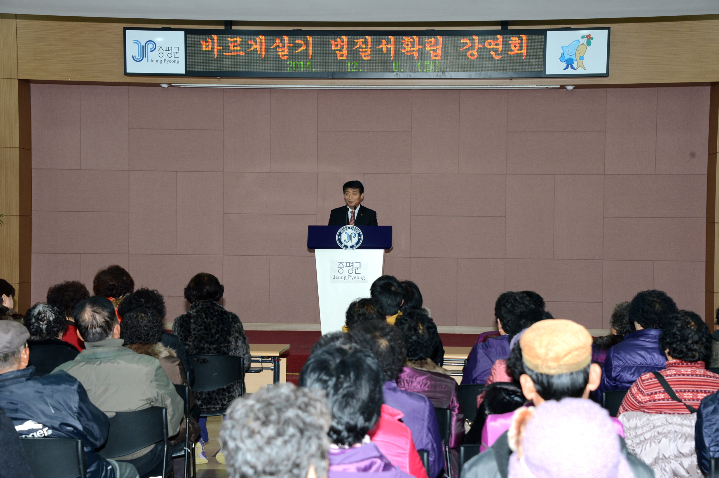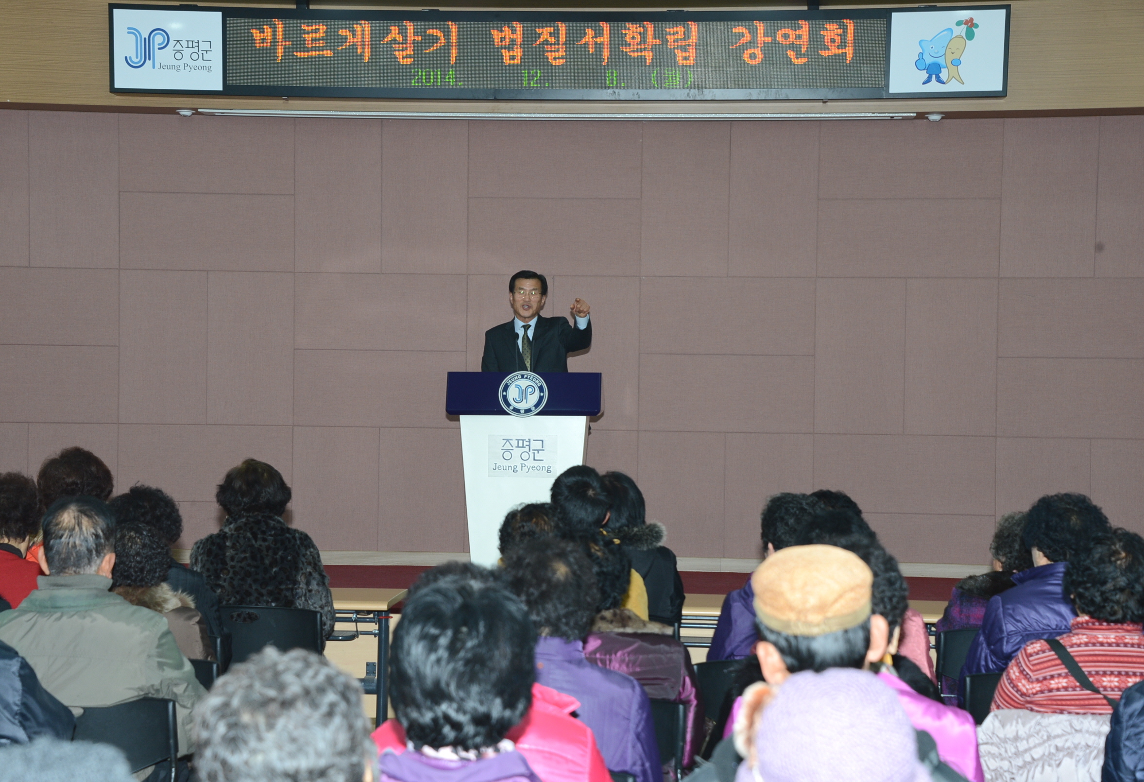 바르게살기운동증평군협의회(회장 김규환)는 8일 오후 2시에 군청 대회의실에서 송진구 인천재능대학교 교수를 강사로 초청해 군민 150여명을 대상으로 바르게살기운동 법질서 확립 강연회를 가졌다. [보도자료실 참조]
