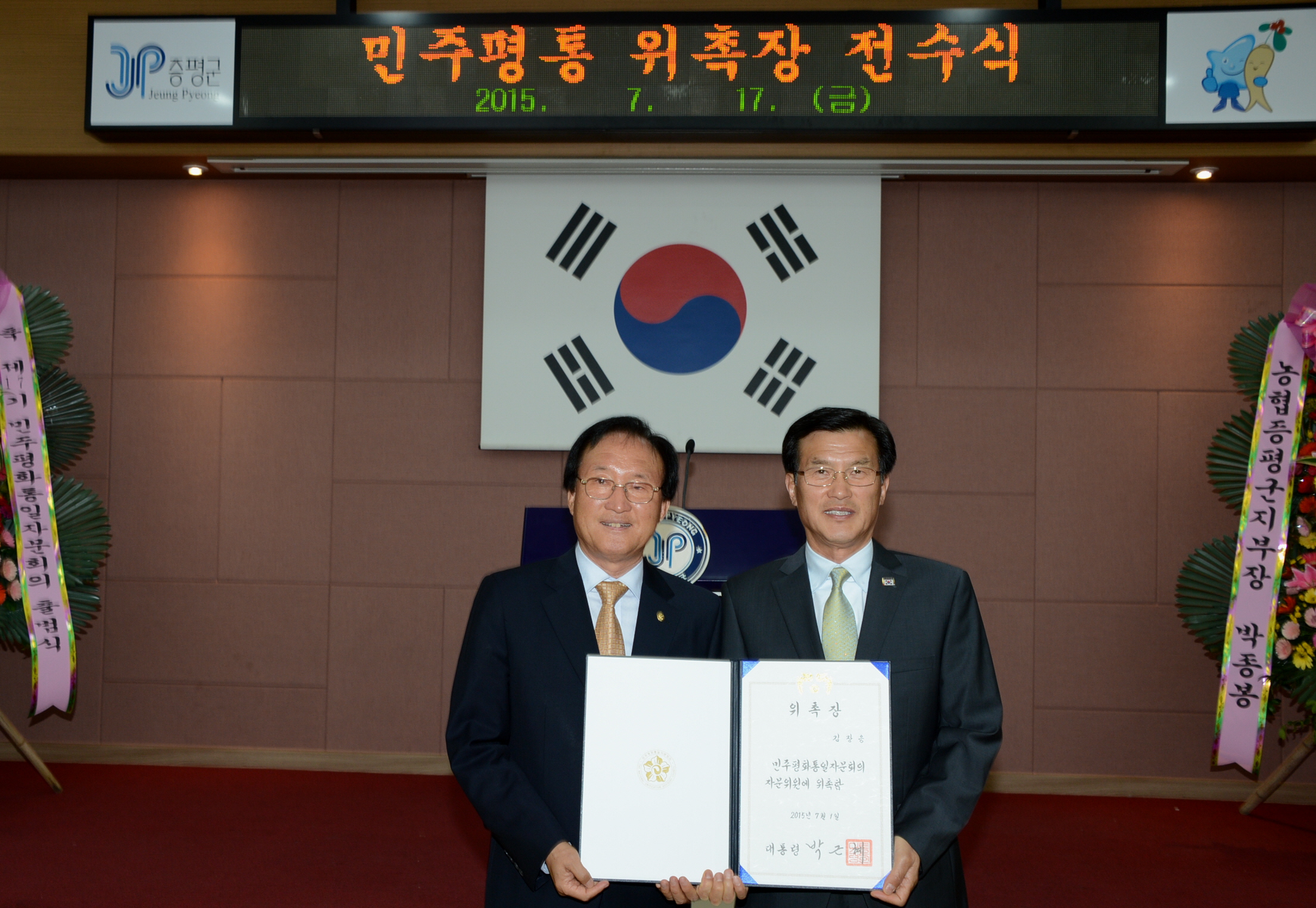 대통령자문 헌법기관인 민주평통 증평군협의회는 17일 오후 5시 군청 대회의실에서 홍성열 군수, 김장응 협의회장, 민주평통 충북 시군협의회장을 비롯한 자문위원 39명이 참석한 가운데 제 17기 출범식을 가졌다.(보도자료실 참조)