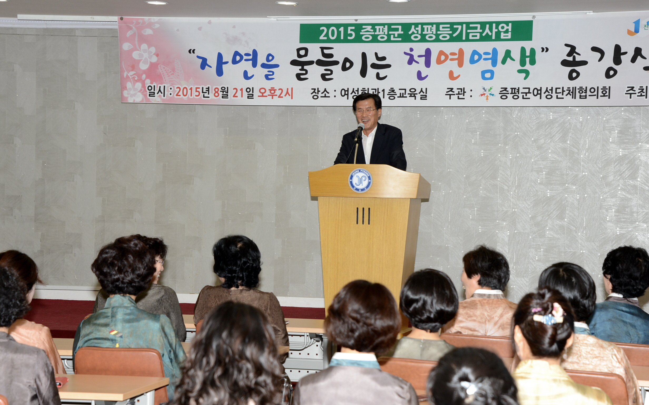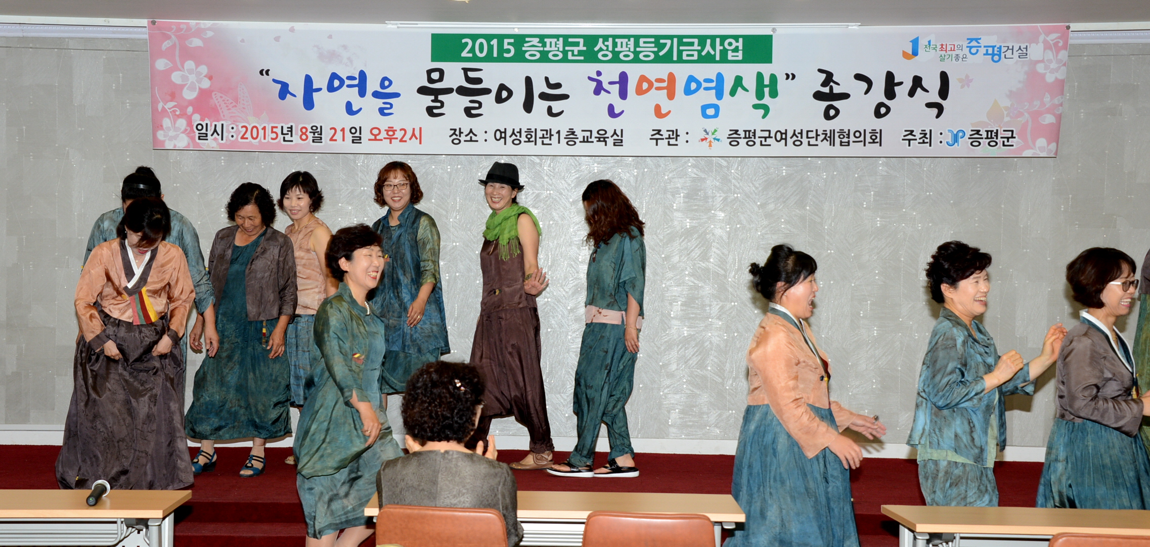 증평군은 21일 오후2시 증평군 여성회관 교육실에서 교육생 25명이 참가한 가운데 진행한‘자연을 물들이는 천연염색’의 종강식을 가졌다.(보도자료실 참조)